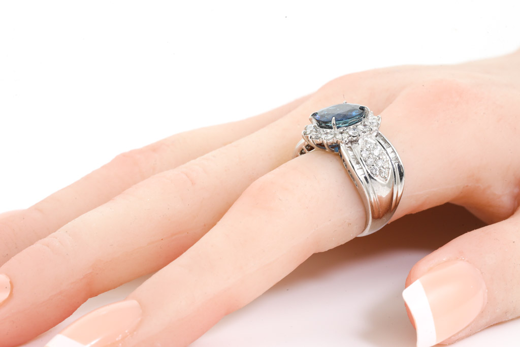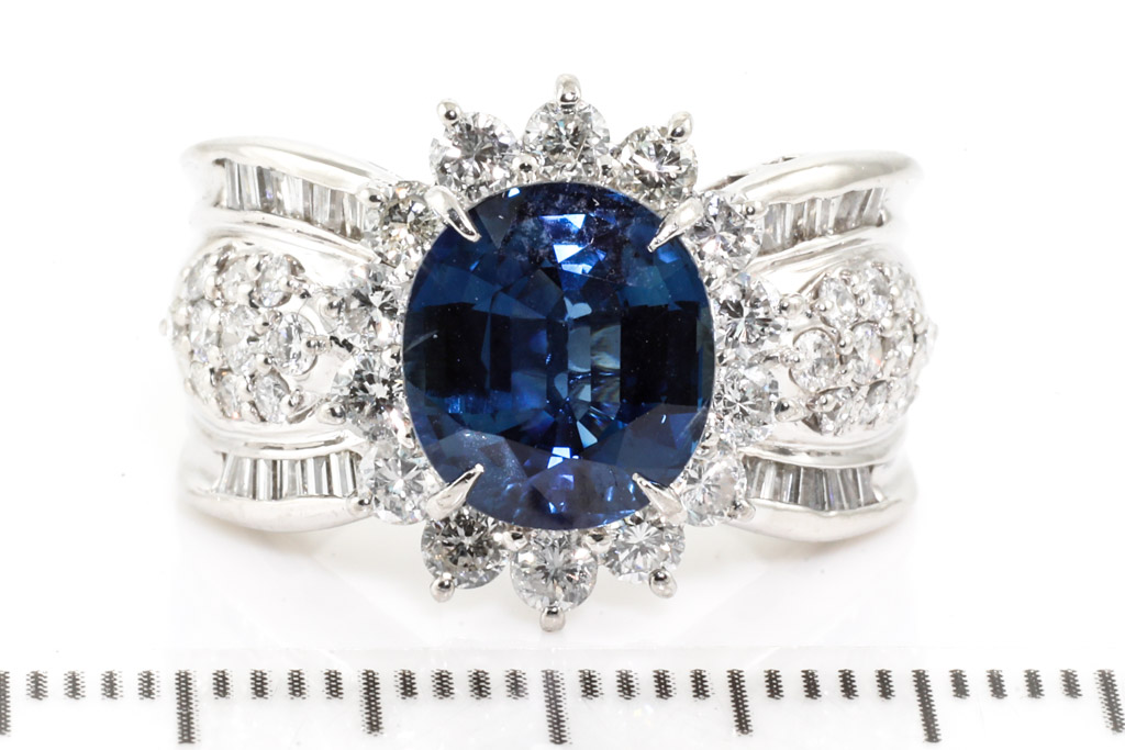 3.58ct Blue Sapphire and Diamond Ring