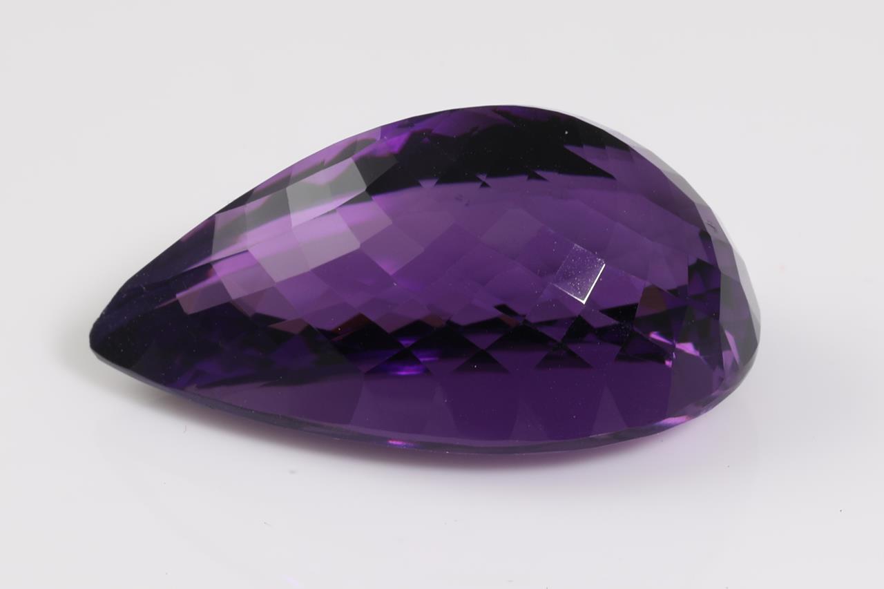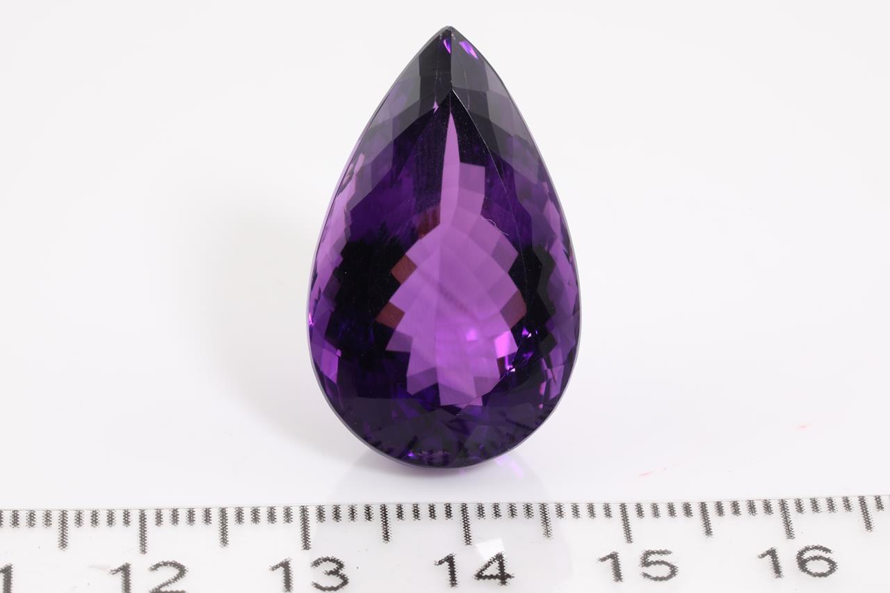 A Loose pear shape Amethyst of 35.95ct. Size: 27.0 x 17.3 x 13.3mm. (New)