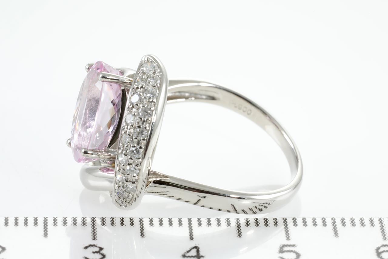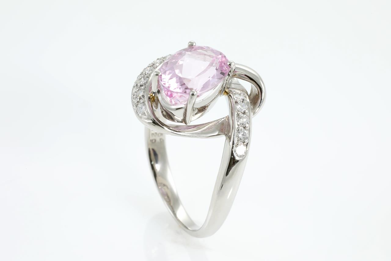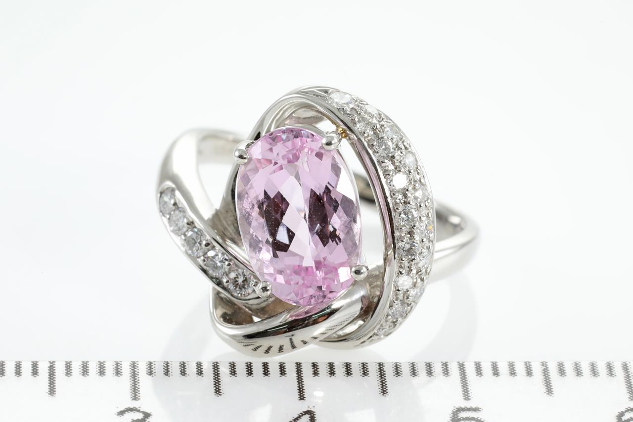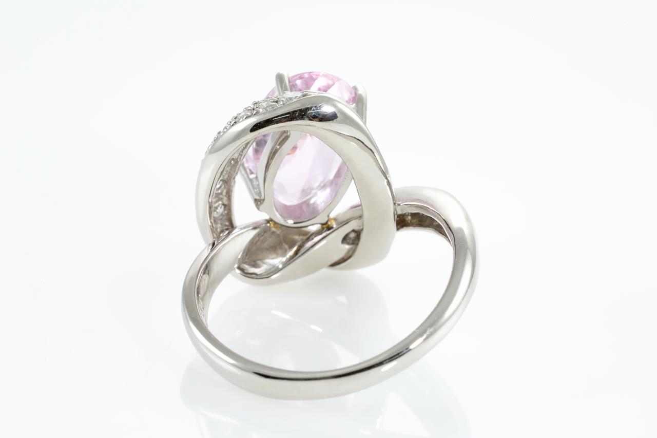 Topaz and Diamond ring with oval shape pink Topaz of 3.64ct and Diamonds totalling 0.29cts. Platinum. Ring size N1/2. Weight: 8.6g (Pre-owned)