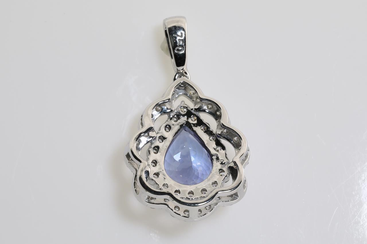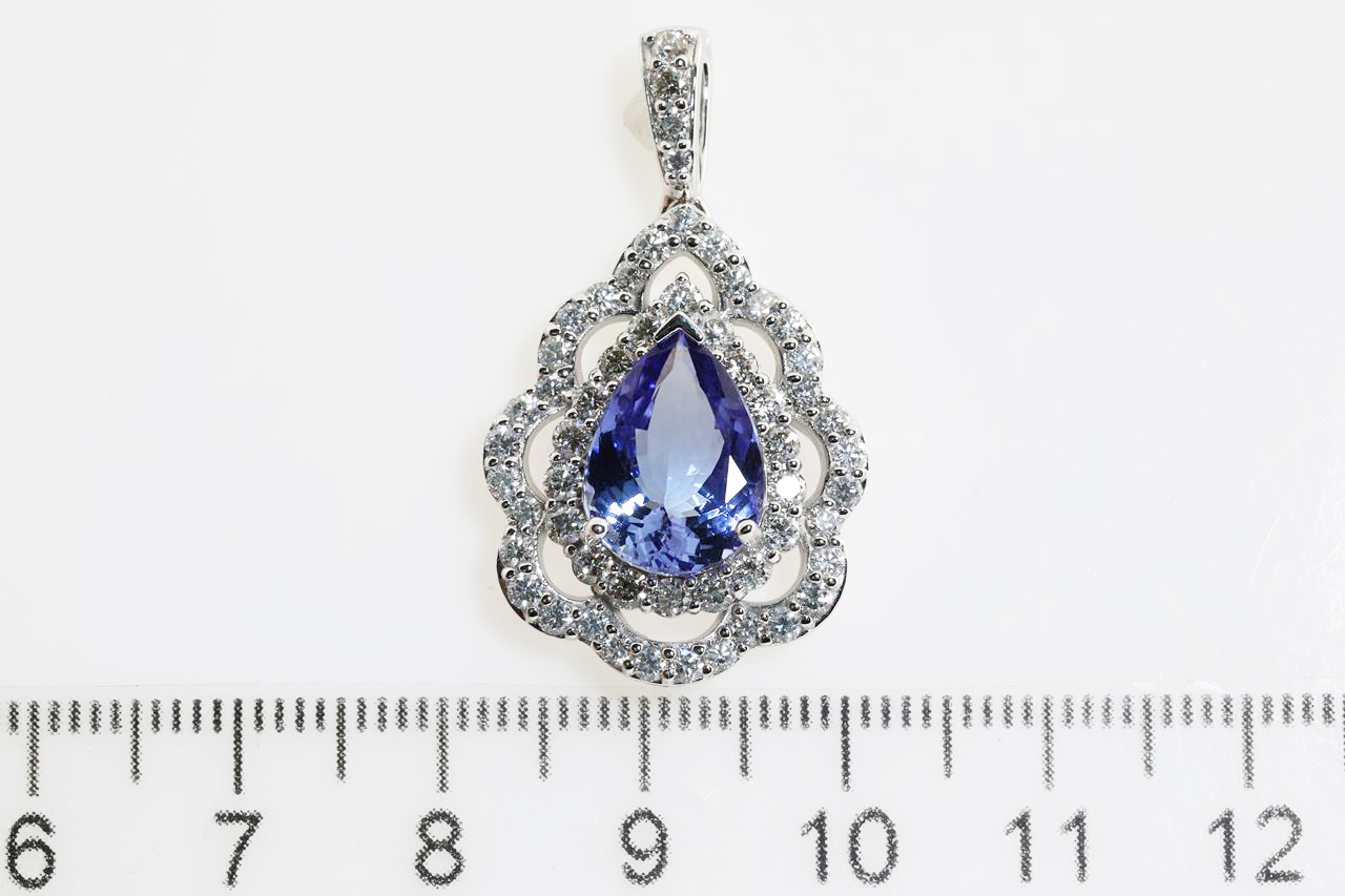 Tanzanite and Diamond pendant with a pear shape Tanzanite of 3.67ct and Diamonds totalling 0.78cts (Estimated grading: I-J SI). 18ct white gold. No chain provided. Weight: 6.0g. (As new)