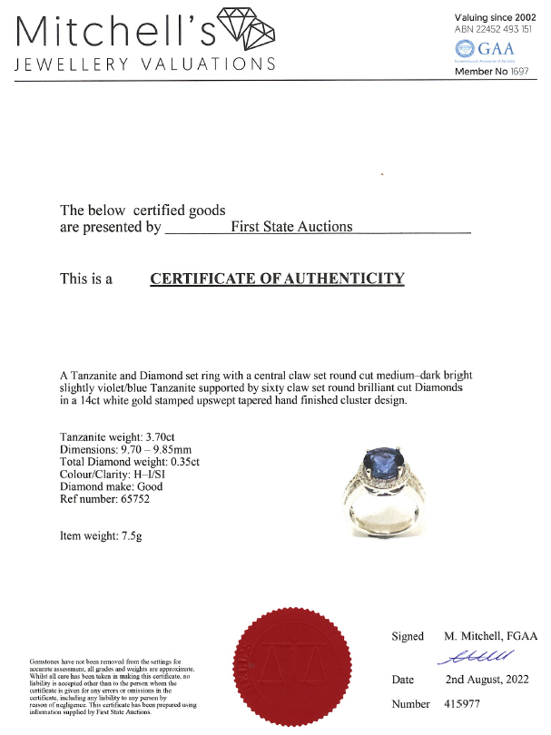 3.70ct Tanzanite and Diamond Ring | First State Auctions