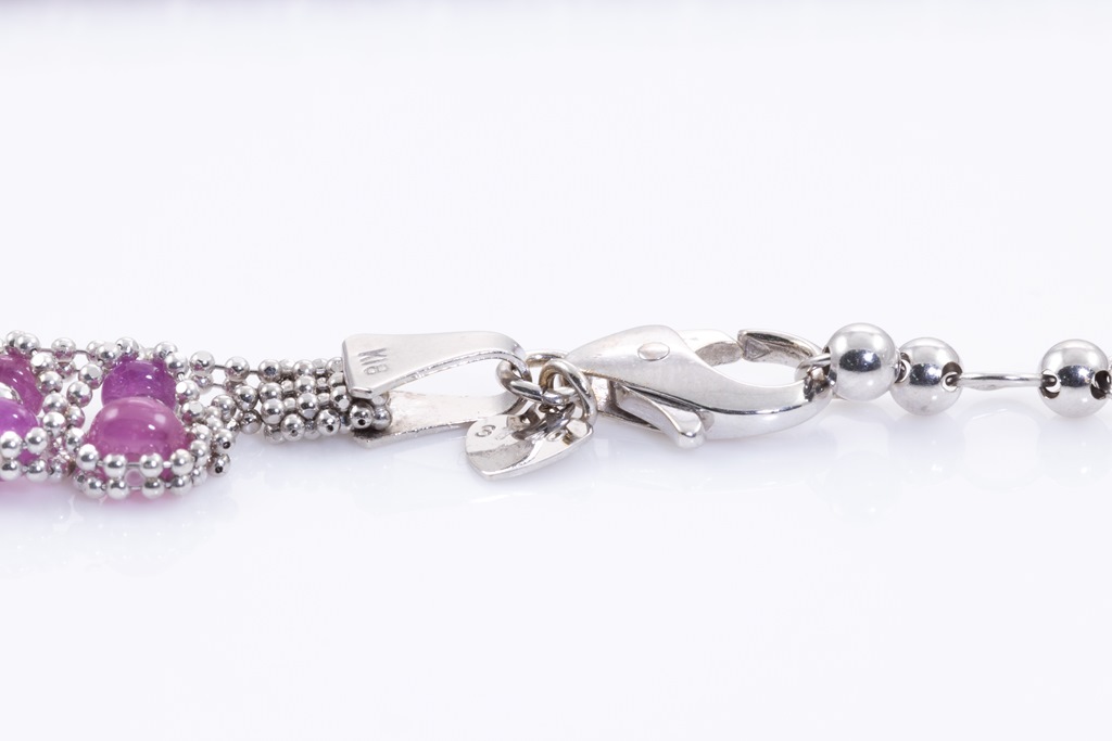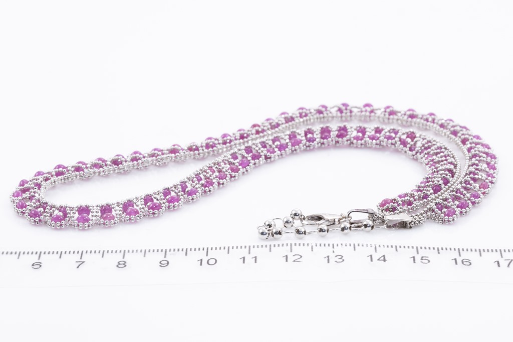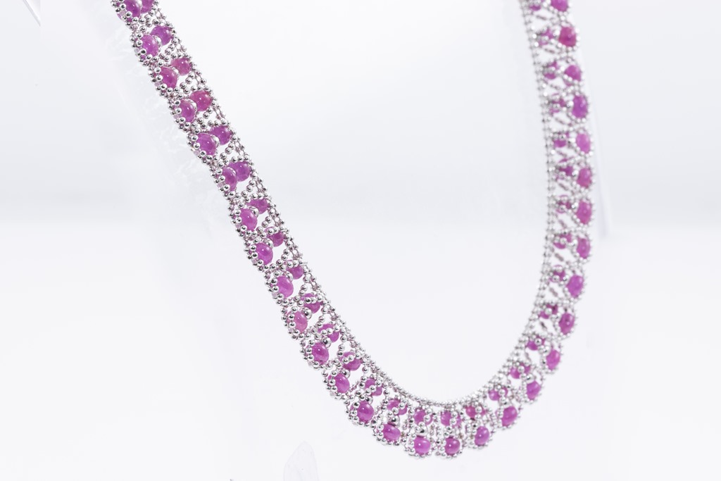 Ruby necklace with Ruby beads totalling 37.40cts. 18ct white gold. Adjustable max length: 45cm. Weight: 25.7g (Pre-owned)