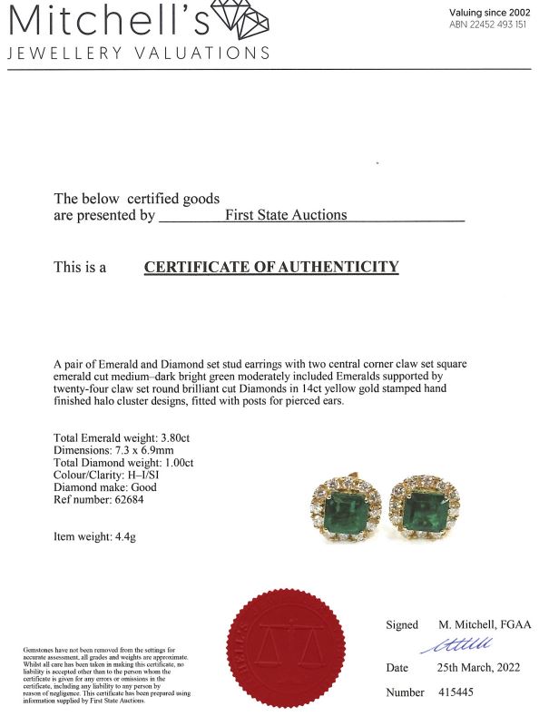 3.80ct Emerald and Diamond Earrings | First State Auctions