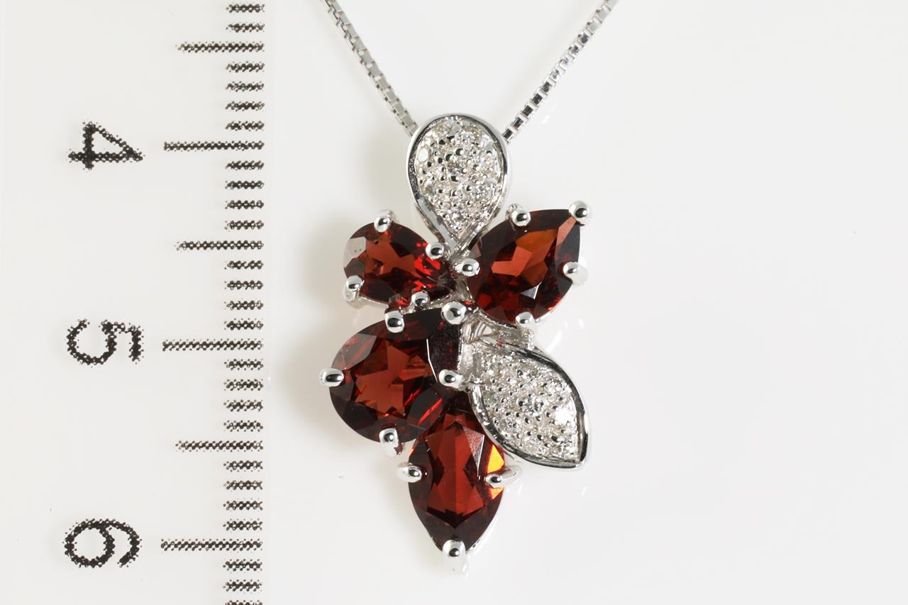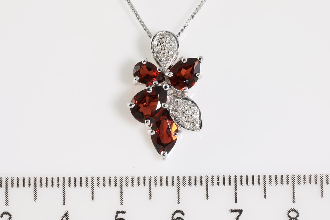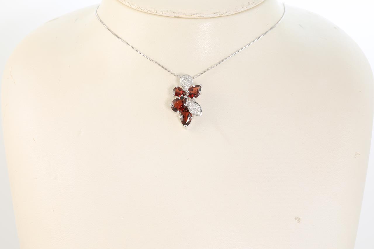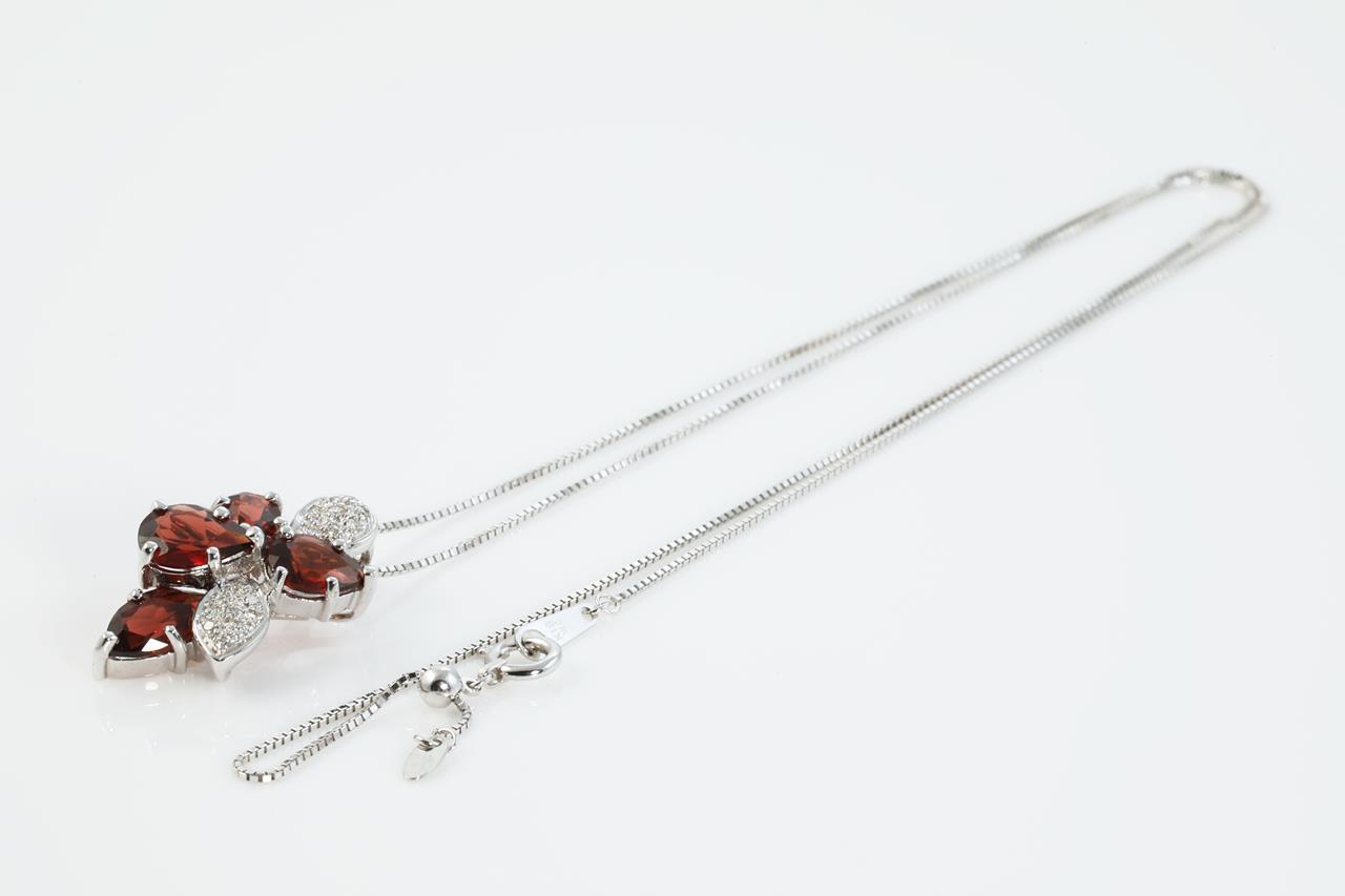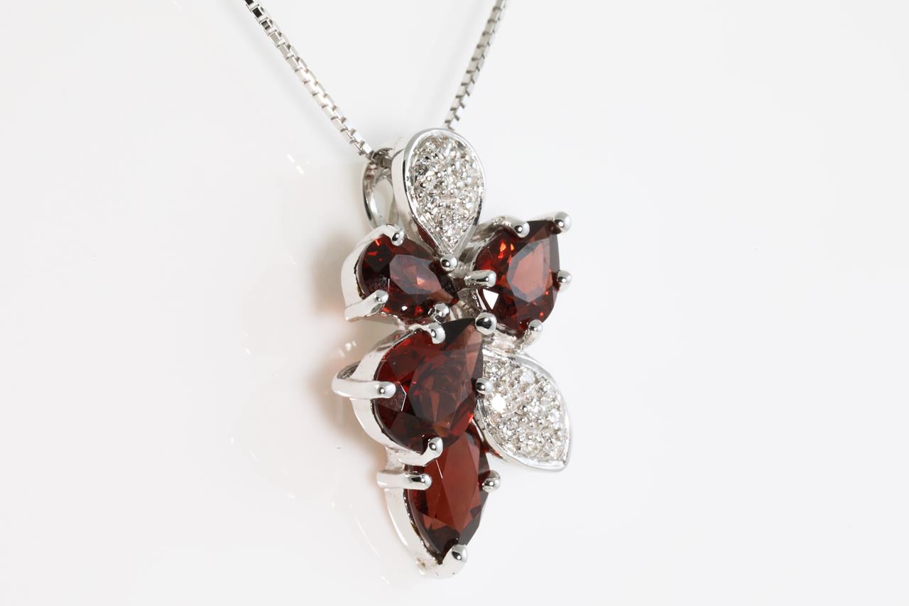 Garnet and Diamond pendant with pear shape Garnets totalling 3.81cts and Diamonds totalling 0.11cts. 18ct white gold. With 45cm ajustable 18ct white gold chain. Weight: 5.6g (Pre-owned)
