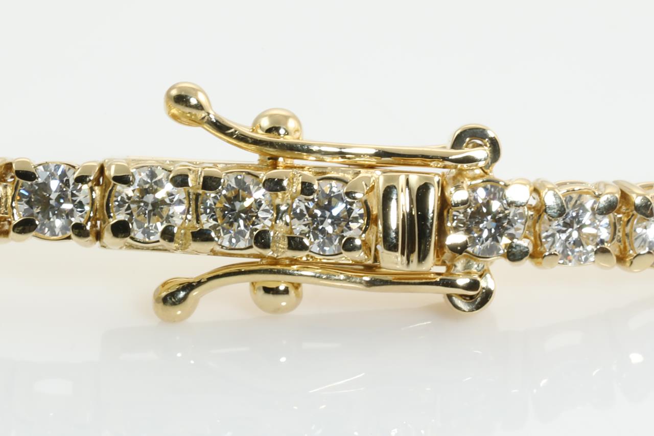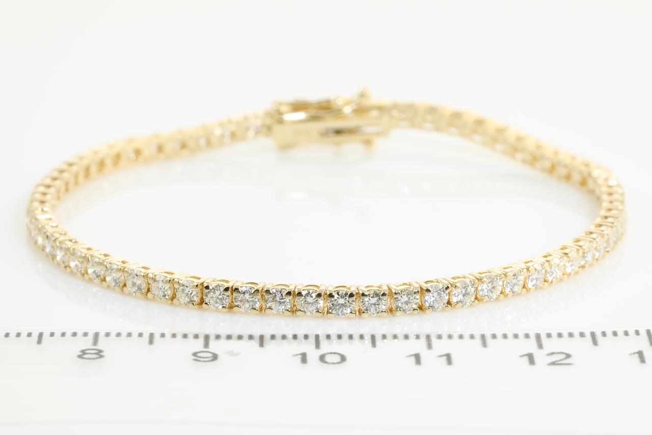 Diamond tennis bracelet with 64 round Diamonds totalling 3.83cts (Estimated grading: I-J SI). 18ct yellow gold. Length: 18cm Weight: 8.6g With certificate #414117. (New)