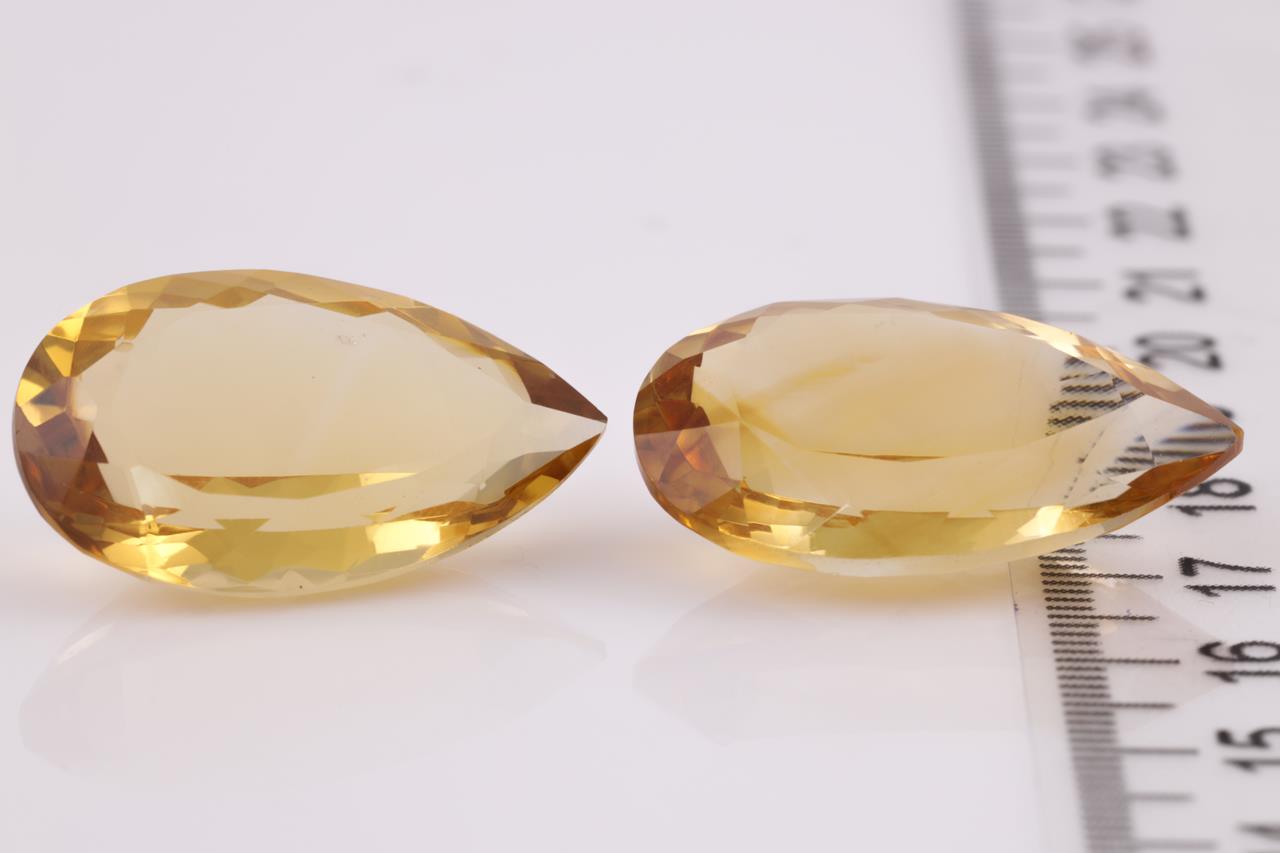 2 Loose pear shape Citrines totalling 38.51ct. Approximate size: 25.3 x 15.1 x 9.0mm. (New)
