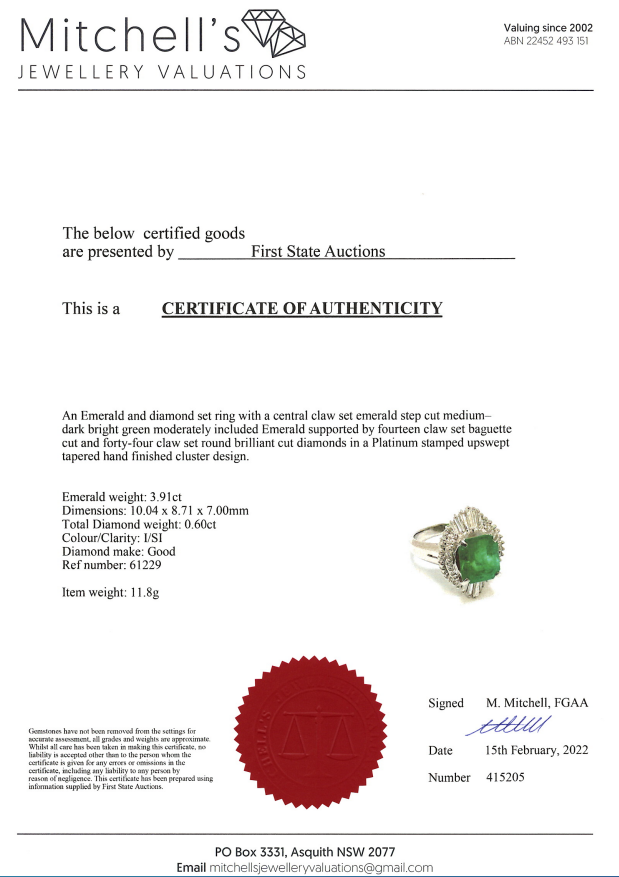 3.91ct Emerald and Diamond Ring | First State Auctions