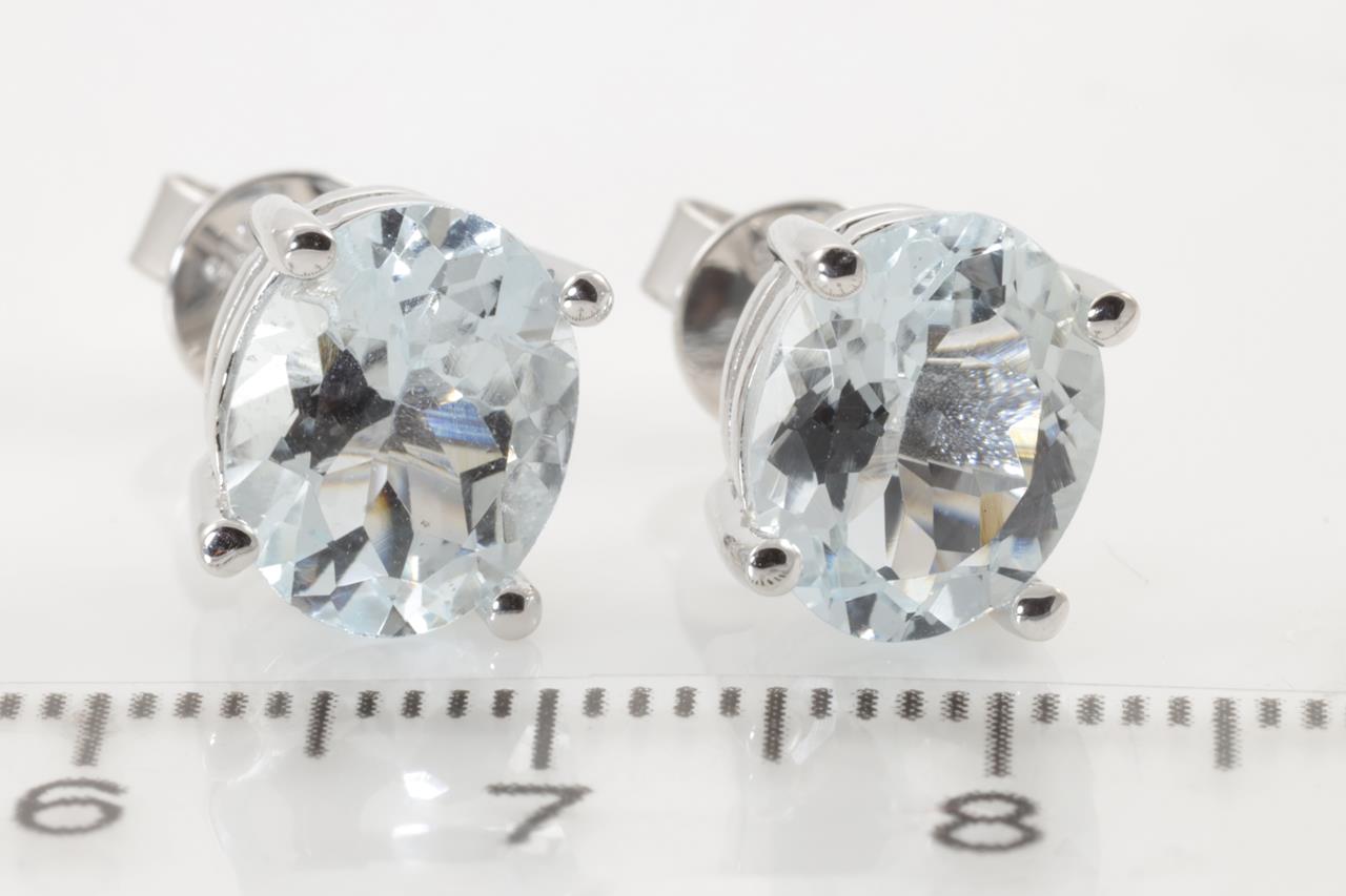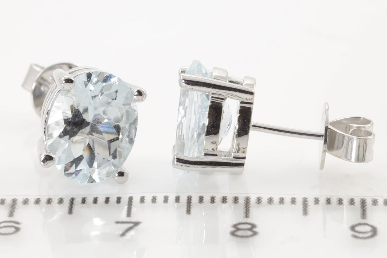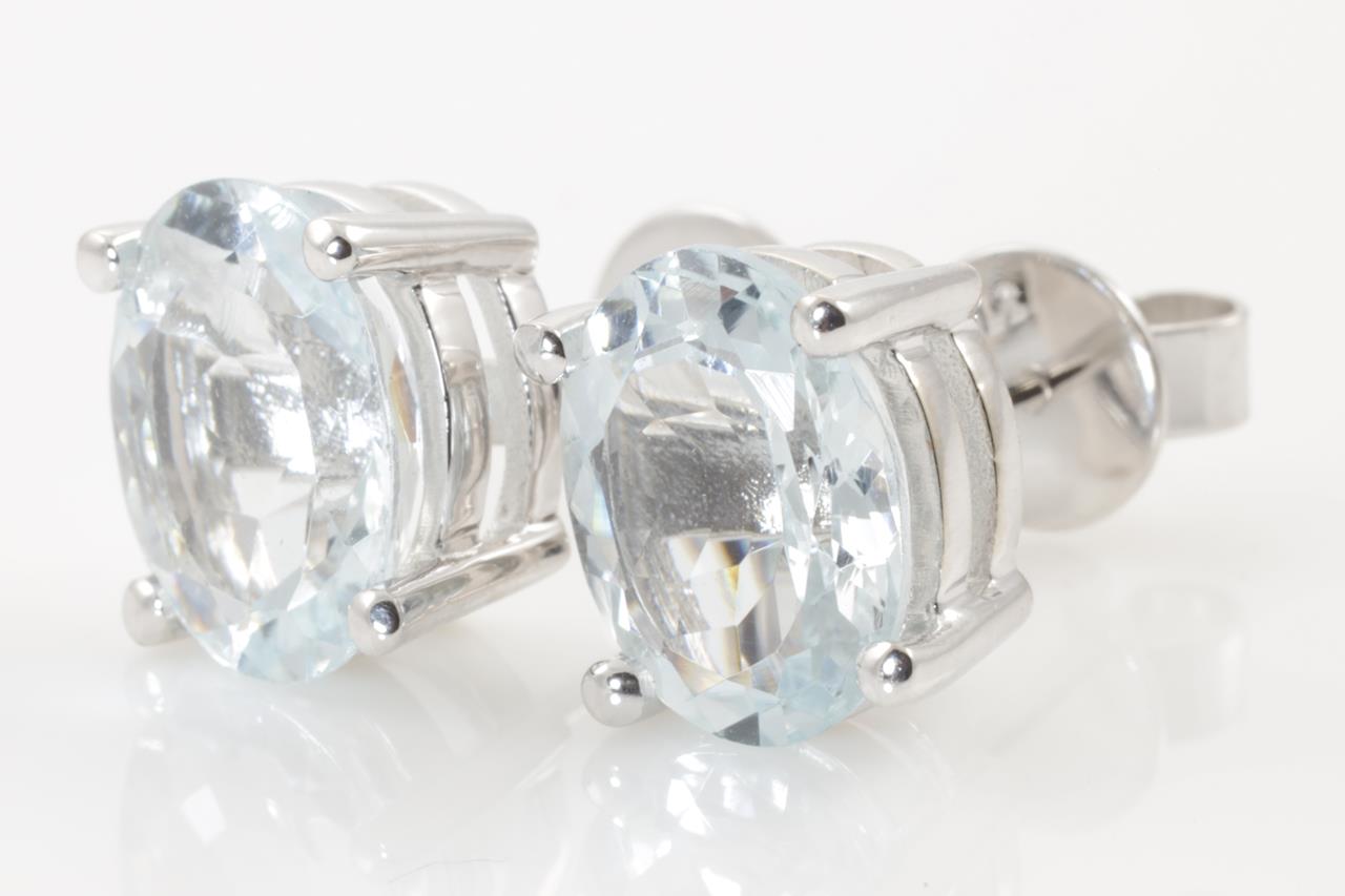 Aquamarine stud earrings with oval Aquamarine totalling 3.94cts. 9ct white gold. Weight: 3.6g. (New)