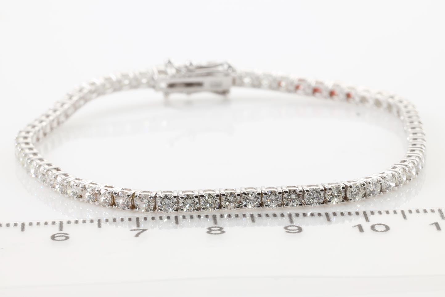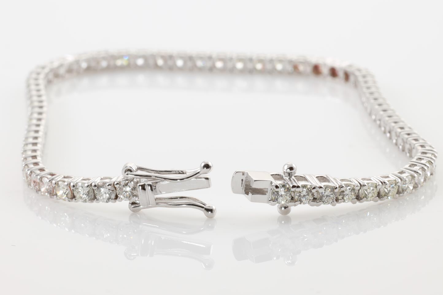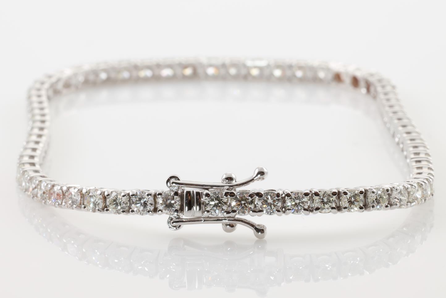 Diamond tennis bracelet with 64 round Diamonds totalling 3.94cts (Estimated grading: G-H SI). 18ct white gold. Length: 18cm Weight:8.4g With certificate #413828 (New)