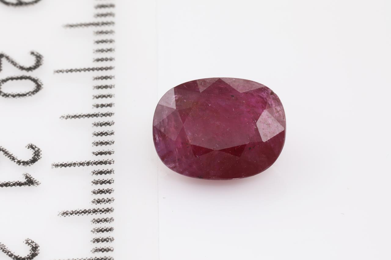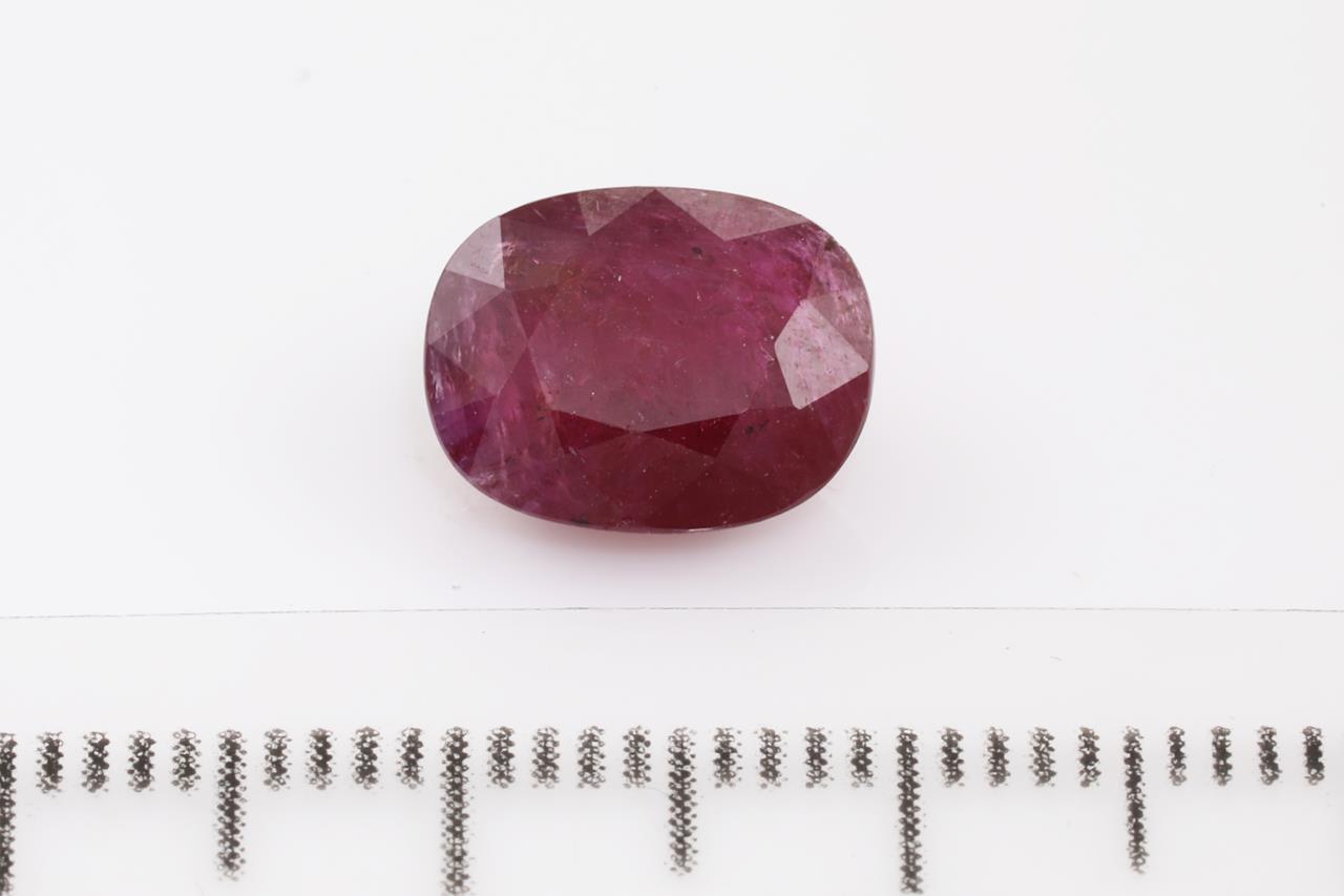A loose cushion cut Thai Ruby of 3.95ct. (with GSL Gemstone Report #AA65744/4). Dimensions: 10.05 x 8.51 x 4.87mm.(As New)