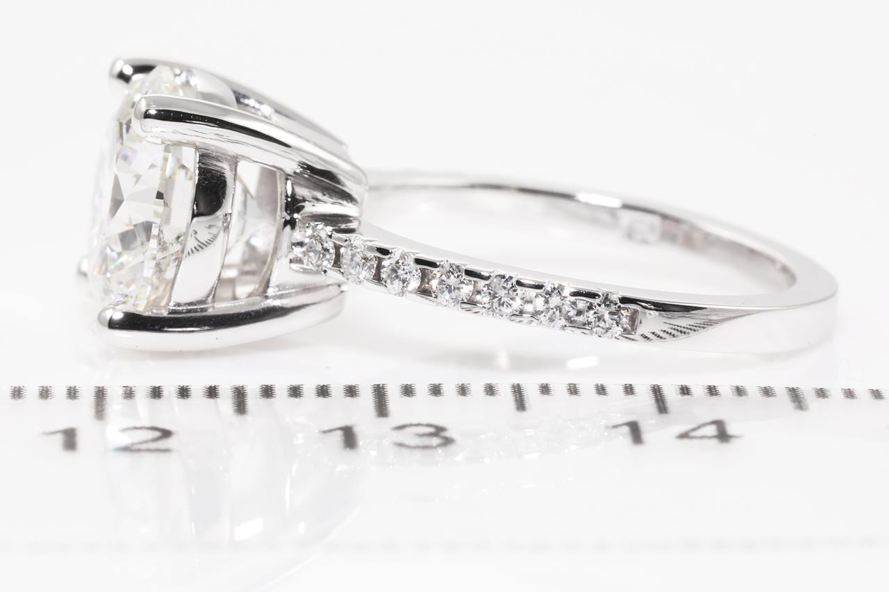 Diamond Ring with Round Brilliant cut Diamond of 4.00ct (with GIA report graded as H SI2 #2201566908) set in 18ct white gold and 14 round diamonds set on band totalling 0.24cts. Ring Size M. Weight: 6.5g. (New)