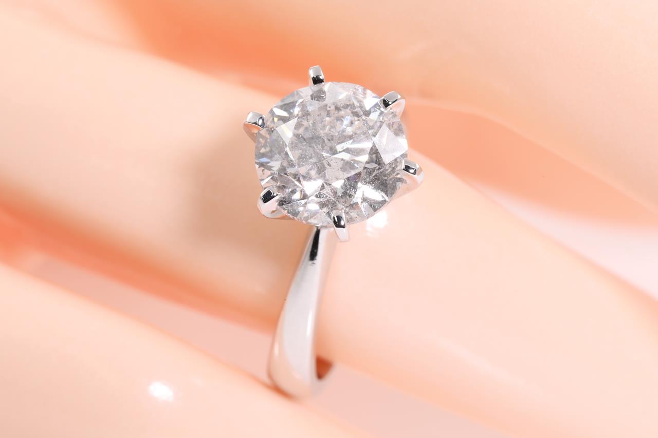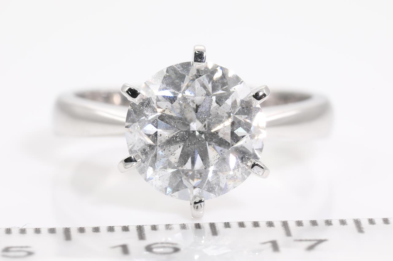 Diamond Solitaire ring with round brilliant cut Diamond of 4.01ct (with GSL report graded as E P1 #AA64937-1). 18ct white gold. Ring size M. Weight: 6.2g (New)