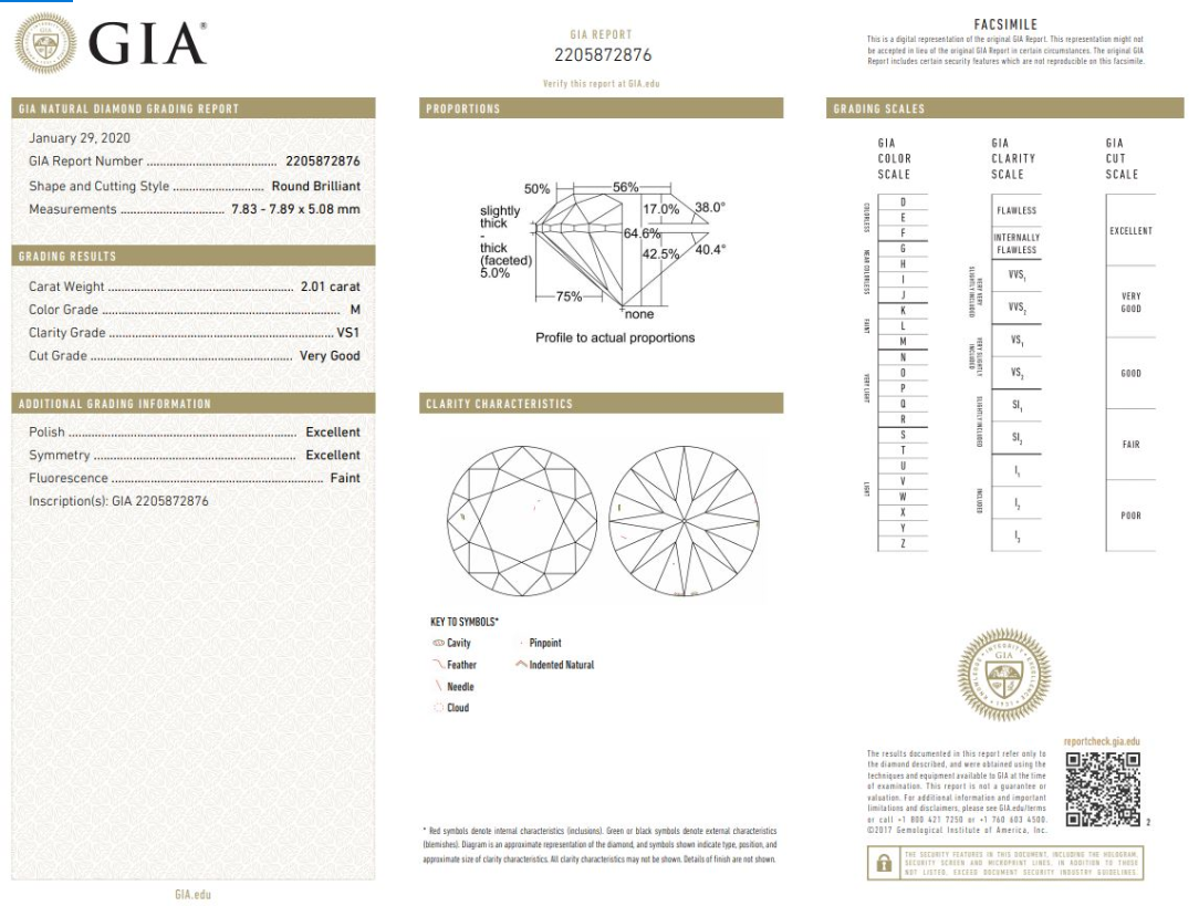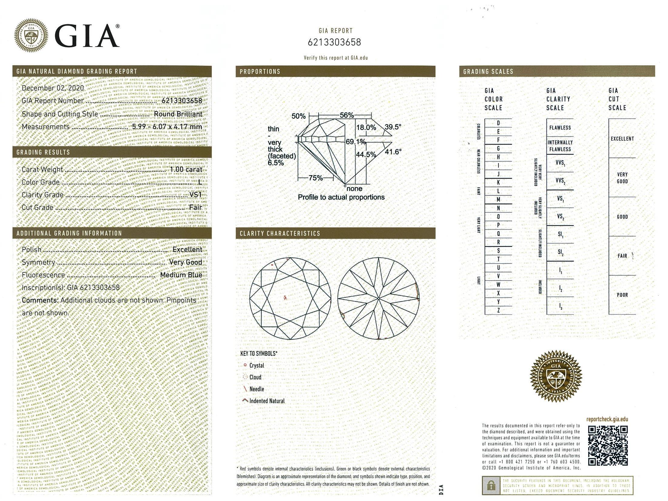 Diamond trilogy ring with centre Round Brilliant cut Diamond of 2.01ct (with GIA report graded as M VS1 #2205872876) and 2 shoulder round Diamonds totalling 2.00cts (With GIA report both graded as L VS1 #6213303658, 2215328831). 18ct white gold. Ring size: L1/2. Weight: 6.3g (New)