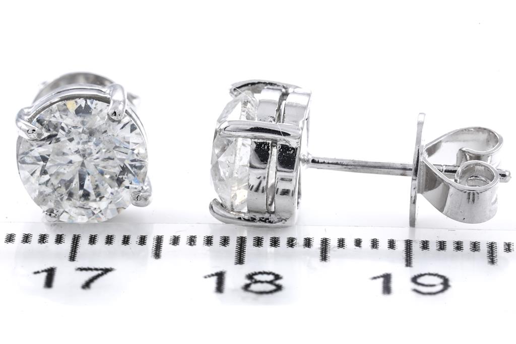 Diamond stud earrings with 2 round brilliant cut Diamonds totalling 4.02cts (With GSL report graded as: I P2 #AA66437/8; I P3 #AA66437/9). 18ct white gold. Weight: 4.5g. (New)