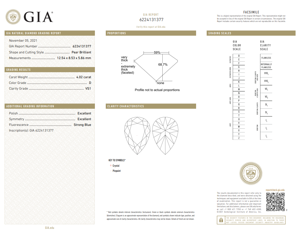 A loose Pear shape Diamond of 4.02ct (With GIA report graded as D VS1 #6224131377