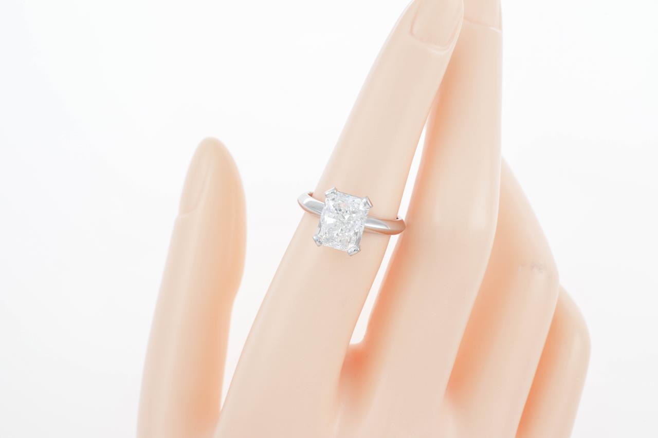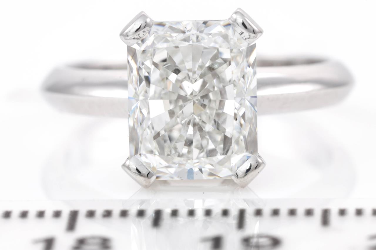 Diamond solitaire ring with Radiant cut Diamond of 4.03ct (With GIA report graded as F VS1 #2201574884). 18ct white gold. Ring size: L1/2. Weight: 6.5g (New)