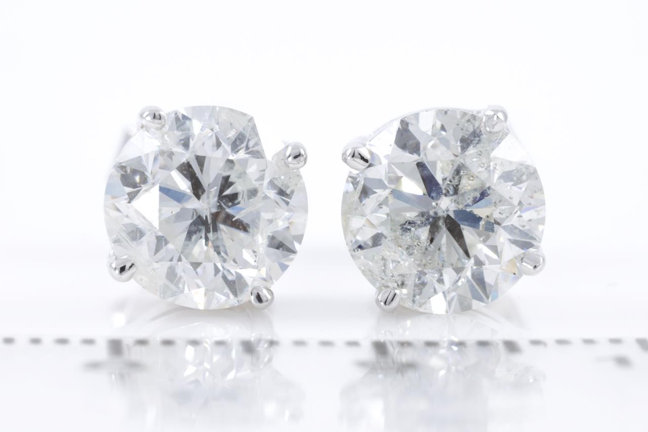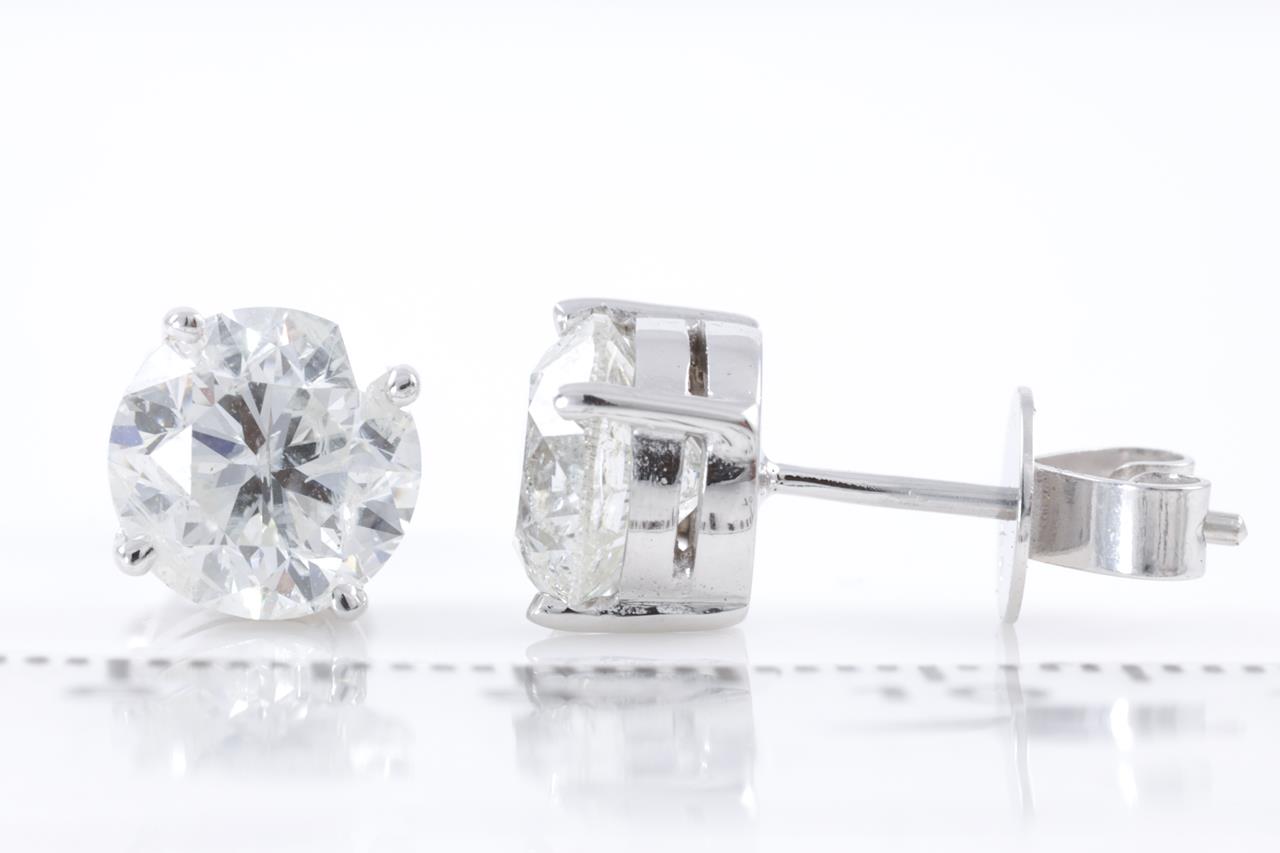 Diamond Stud earrings with 2 round brilliant cut Diamonds totalling 4.03cts (With GSL Reports graded as J P2, AA65789-4, AA65789-3). 18ct white gold. Weight: 4.3g (New)