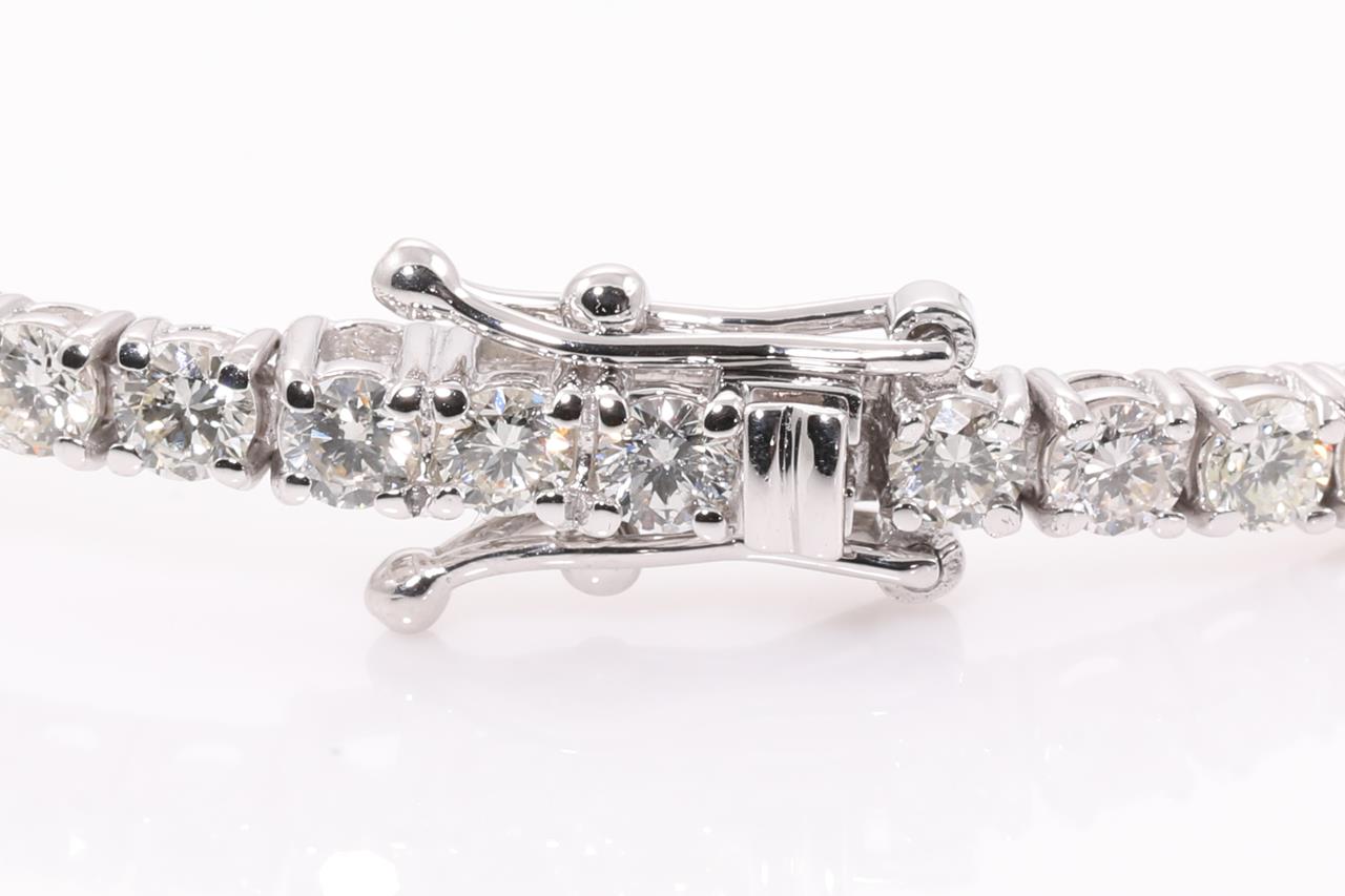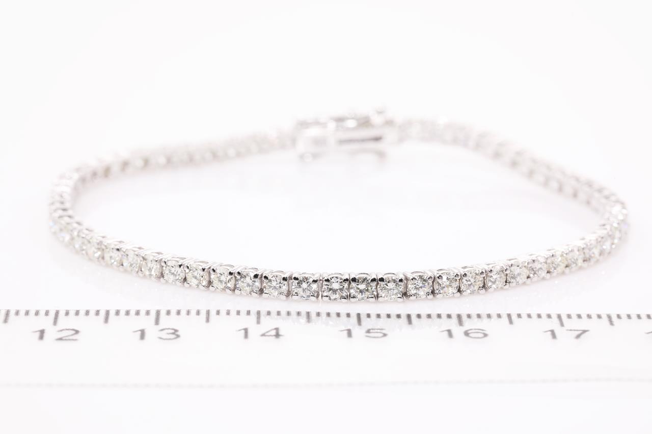 Diamond tennis bracelet with 64 round Diamonds totalling 4.03cts (Estimated grading: G-H SI). 18ct white gold. Length: 18cm. Weight: 8.6g. With certificate #414477. (New)