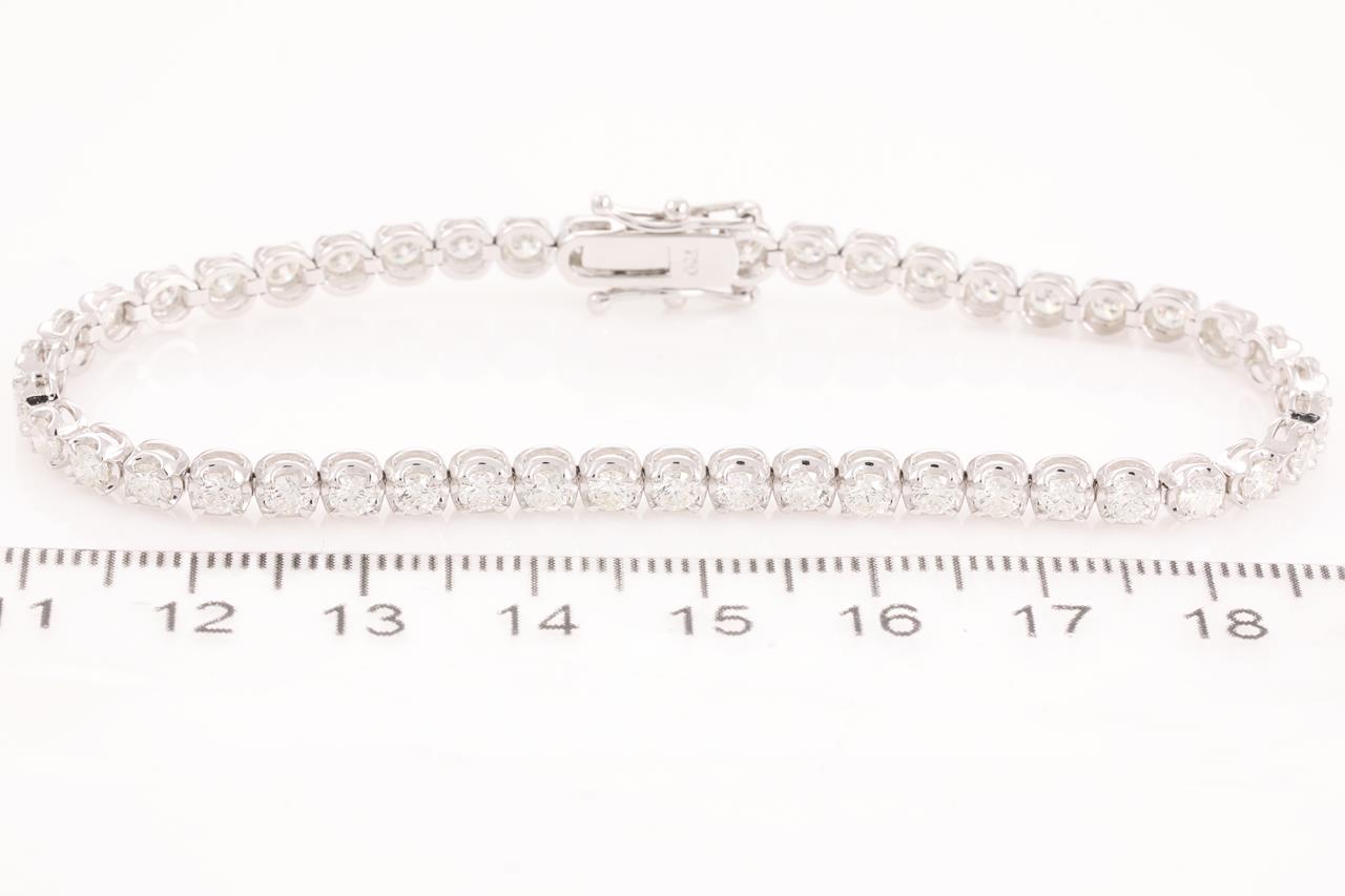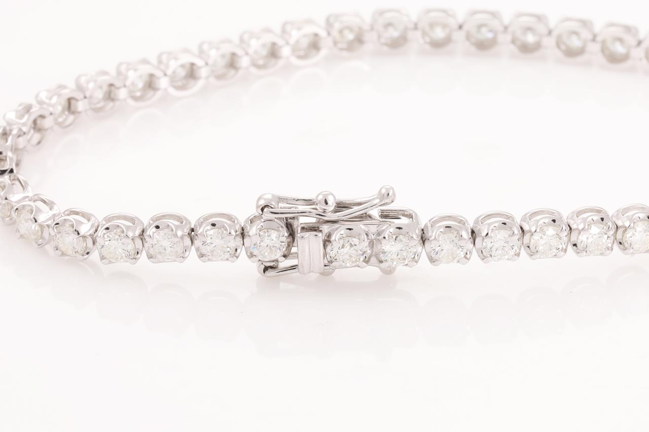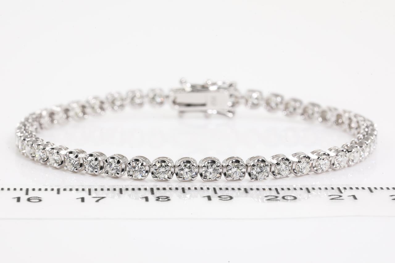 Diamond tennis bracelet with 46 round Diamonds totalling 4.03cts (Estimated grading: H-I SI). 18ct white gold. Length: 18cm. Weight: 9.8g. With certificate #415141. (New)