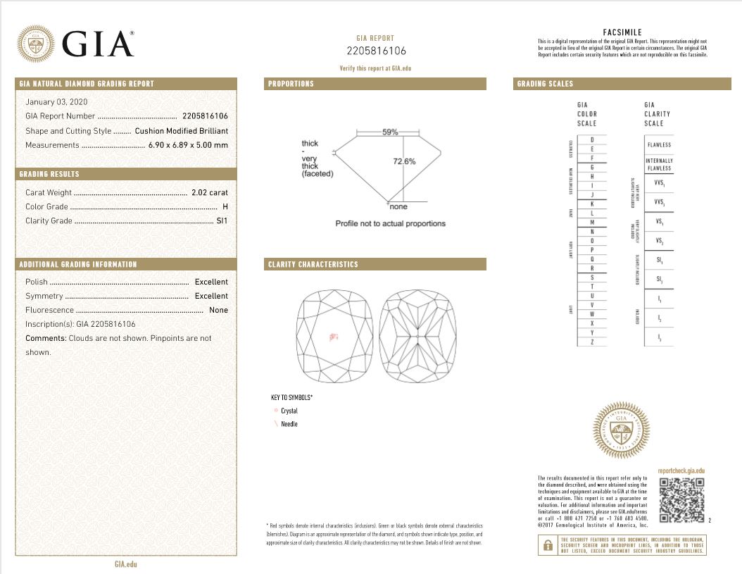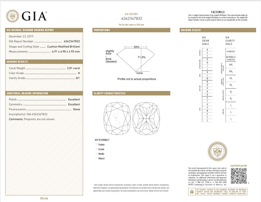 A loose pair of cushion cut Diamonds totalling 4.03cts (Both with GIA reports graded as H SI1 #6342347832, 2205816106). (New)