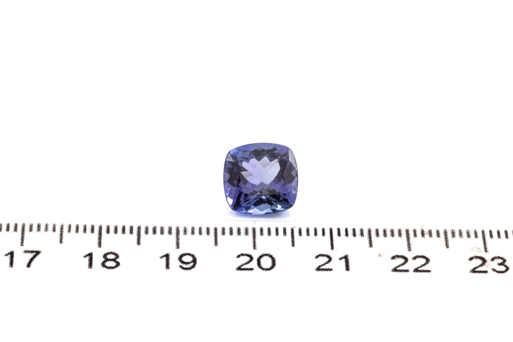 A loose cushion cut Tanzanite of 4.06ct. Dimensions: 9.80mm x 9.70mm x 5.87mm. (As New)