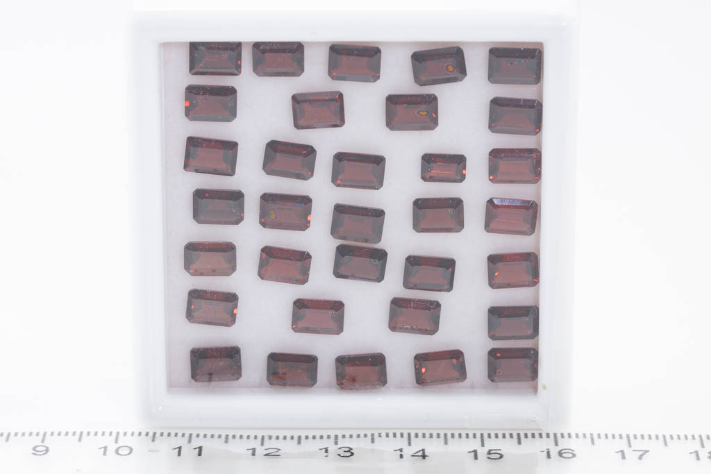 A loose parcel of approximately 33 emerald shape garnet totalling 40.90ct. Measuring approximately 7 x 5mm. (As New)