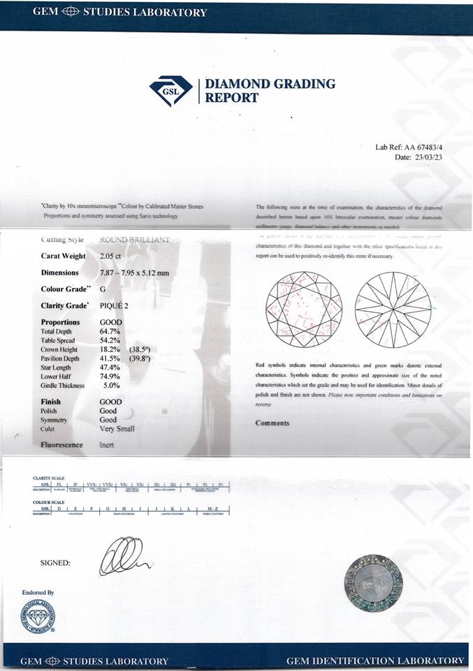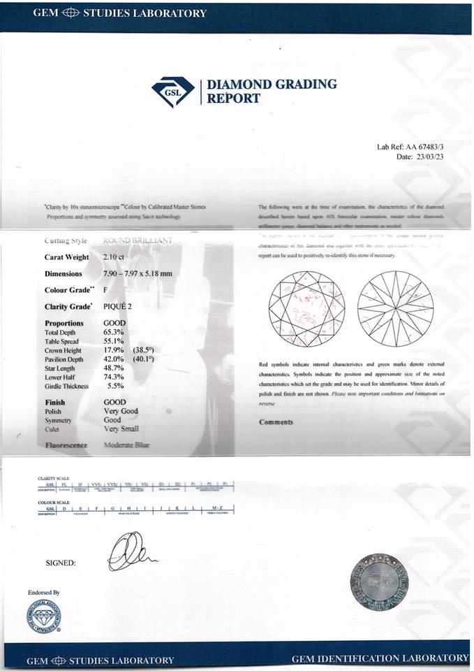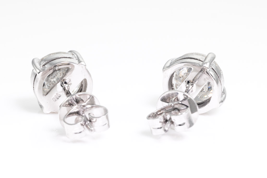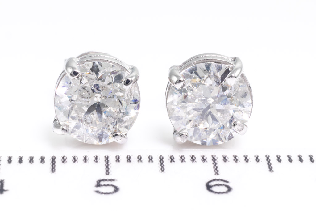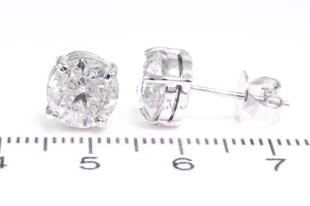 Diamond stud earrings with 2 round brilliant cut Diamonds totalling 4.15cts (With GSL Reports graded as F P2 #AA 67483/3, G P2 #AA67483/4). 18ct white gold. Weight: 4g (New)