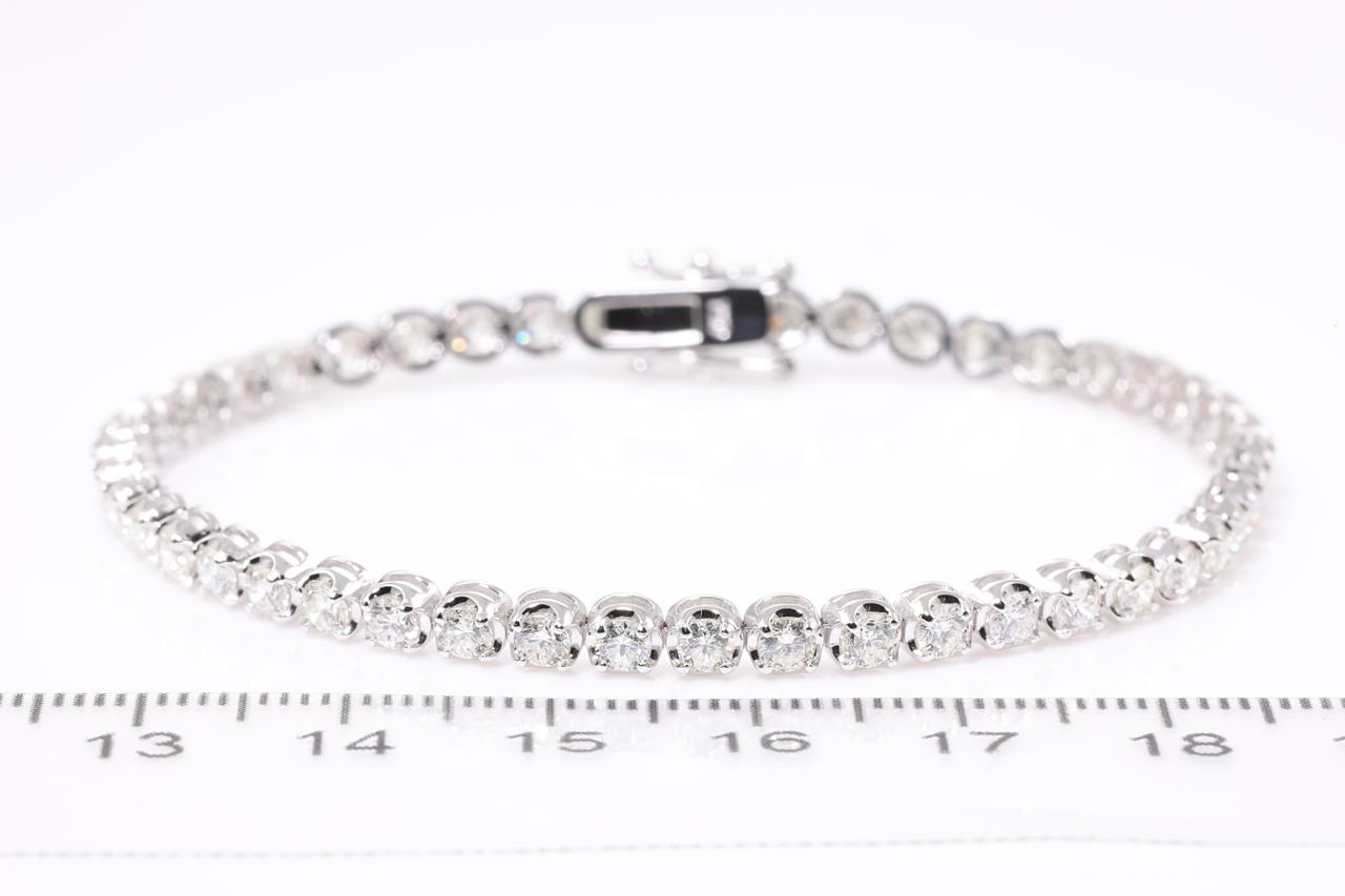Diamond tennis bracelet with 46 round Diamonds totalling 4.16cts (Estimated grading: G-H SI). 18ct white gold. Length: 18cm. Weight: 9.6g. With certificate #414473. (New)