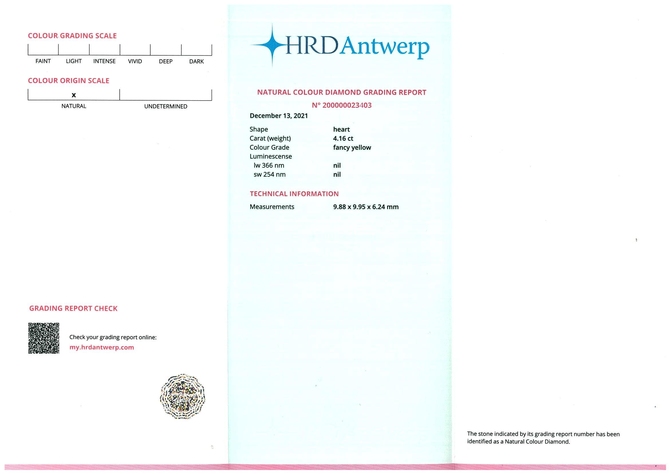 4.16ct Fancy Yellow Diamond Pendant HRD