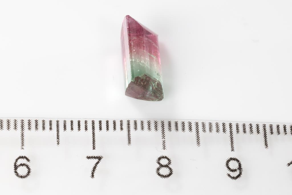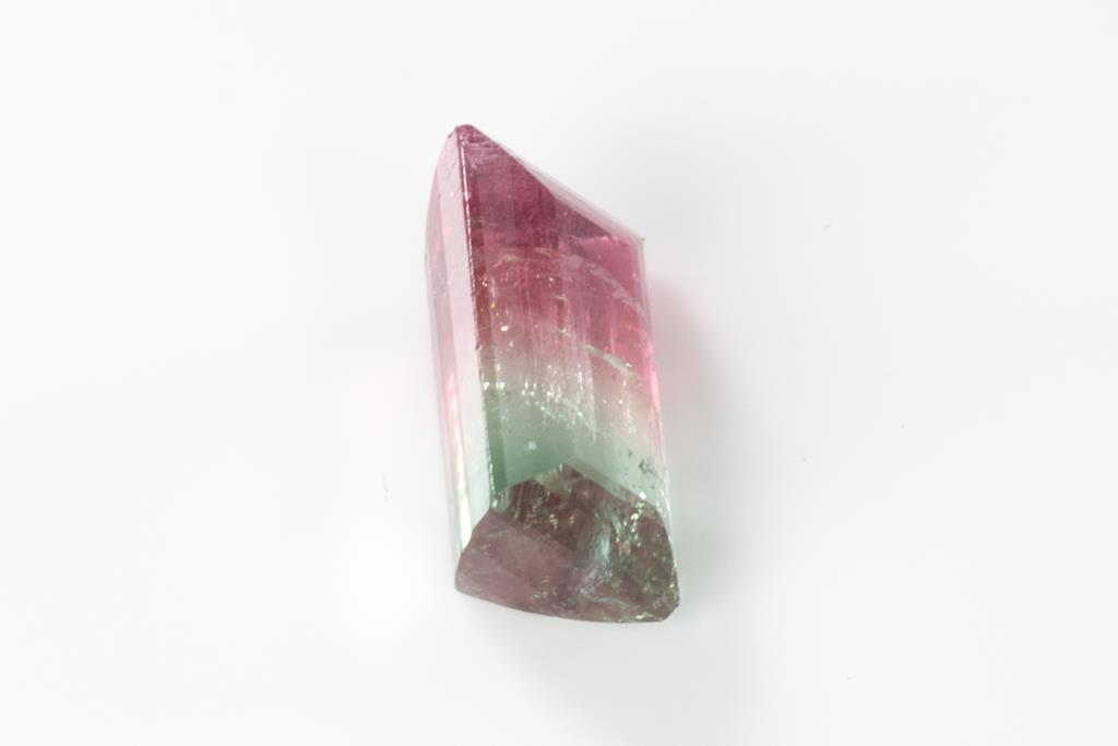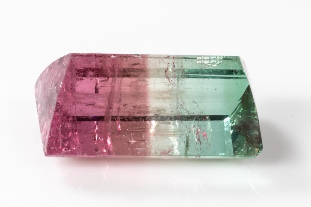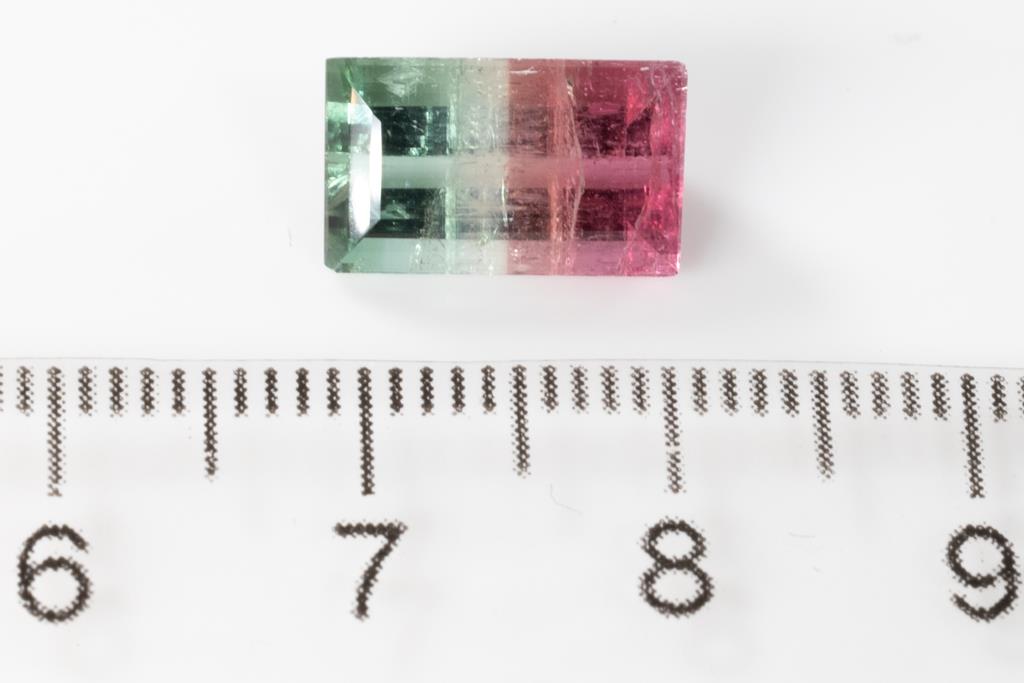 A loose baguette cut watermelon Tourmaline of 4.16ct. Dimensions 12.0mm x 7.2mm x 5.5mm. Note natural surface reaching inclusions. (Pre-owned)
