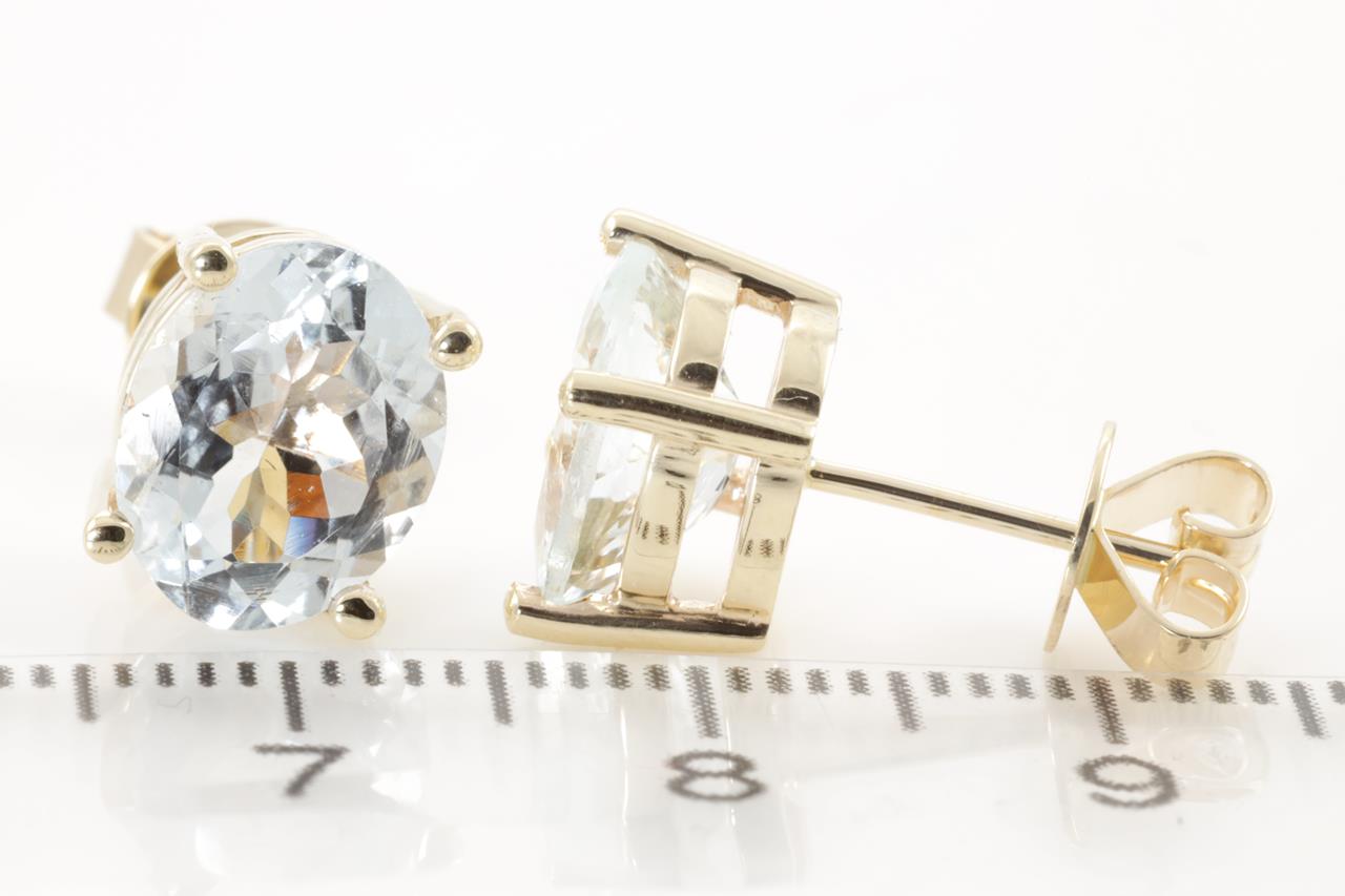 Aquamarine stud earrings with oval Aquamarine totalling 4.18cts. 9ct yellow gold. Weight: 3.4g. (New)