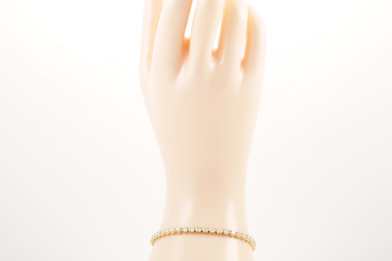 Diamond tennis bracelet with 46 round Diamonds totalling 4.23cts (Estimated grading: IJ SI). 18ct yelow gold. Length: 18cm. Weight: 9.9g. With certificate #414430. (New)