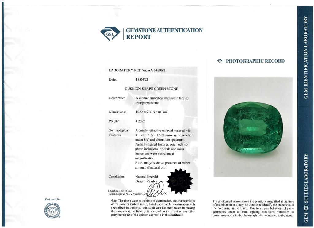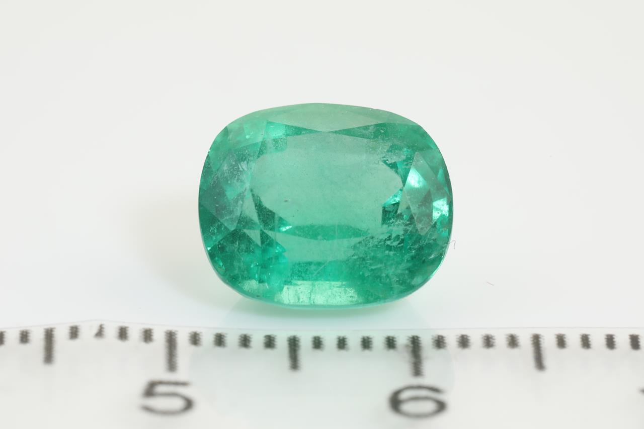 A loose cushion mixed cut Zambian Emerald of 4.28ct (with GSL Gemstone authentication report #AA 64896/2). (New)
