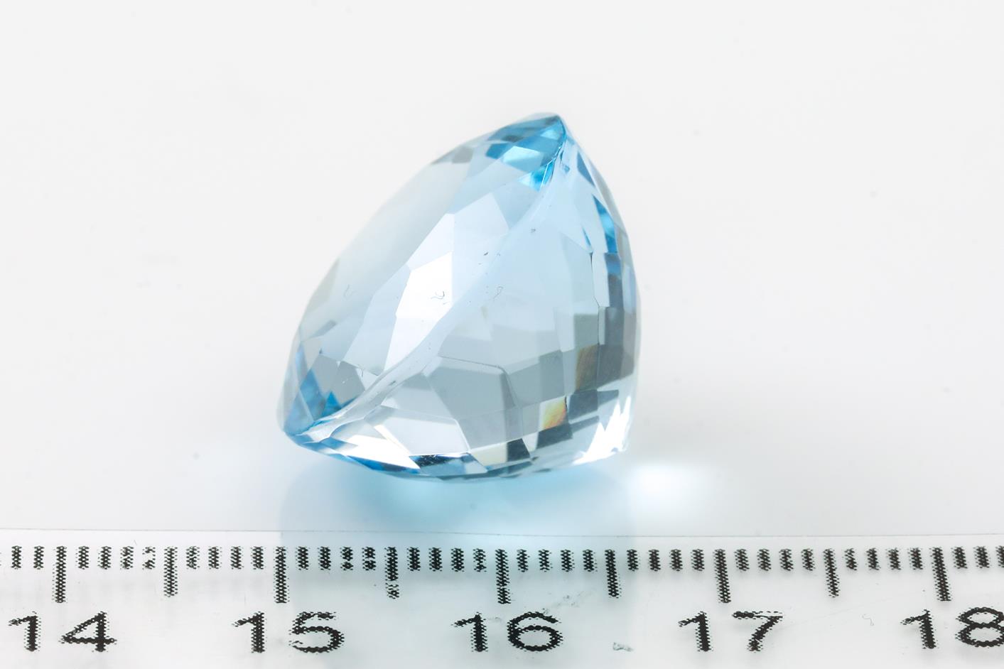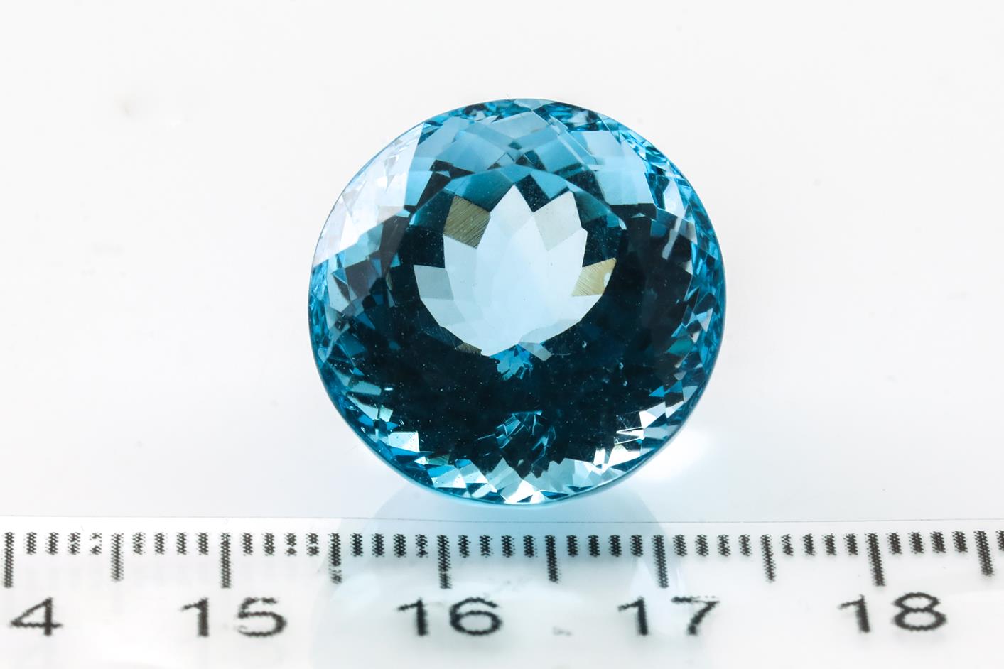A loose round Topaz of 43.25ct. Dimensions: 19mm x 15.2mm. (As New)