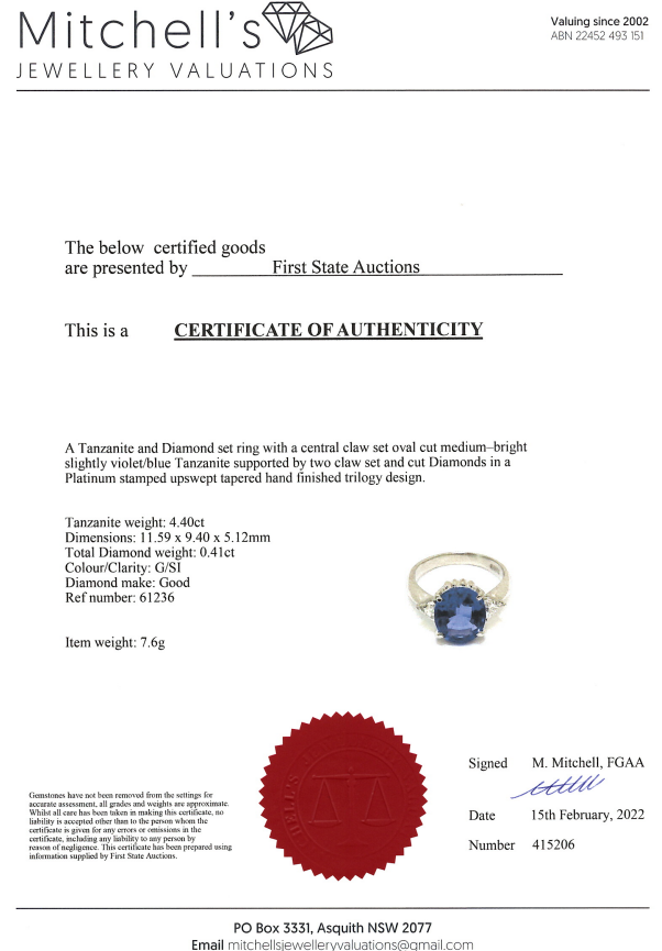 4.40ct Tanzanite and Diamond Ring | First State Auctions
