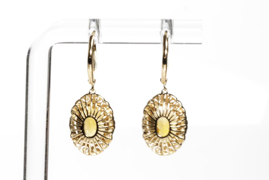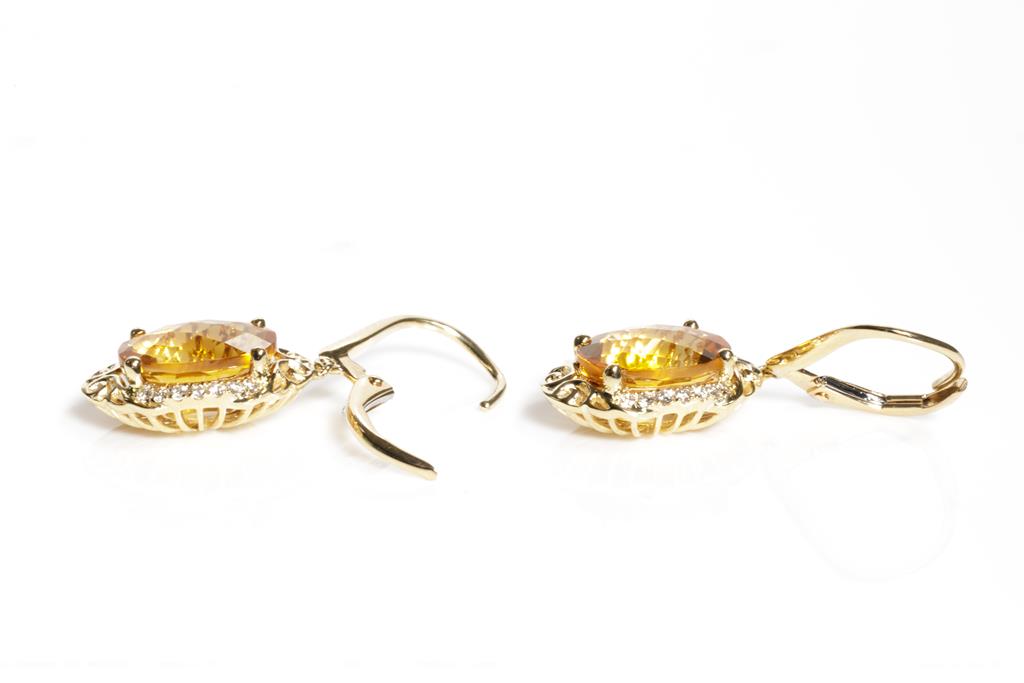 Citrine and Diamond earrings with oval Citrine totalling 4.45cts and round Diamonds totalling 0.17cts. 14ct yellow gold. Weight: 4.0g. (New)