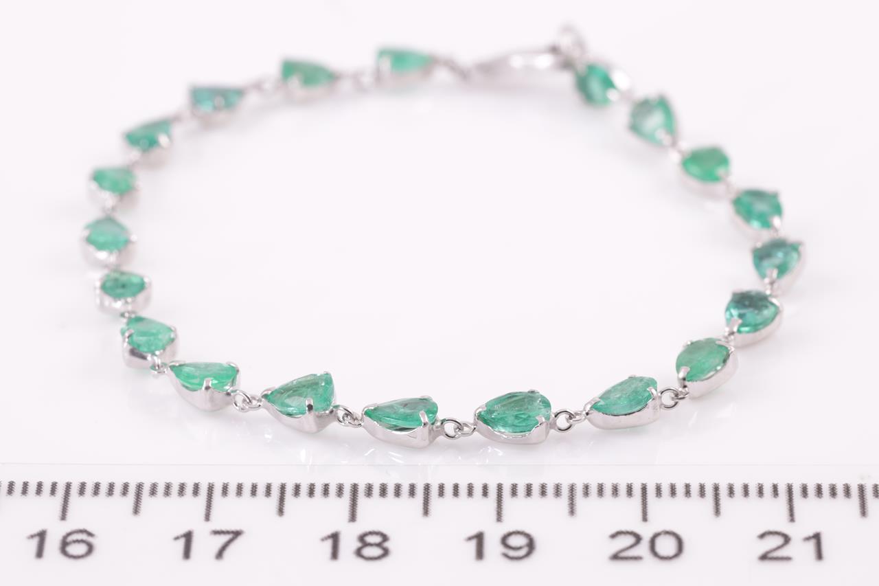 Emerald bracelet with pear shape Emeralds totalling 4.48cts. Platinum. Length: 17cm. Weight: 3.6g (Pre-owned)