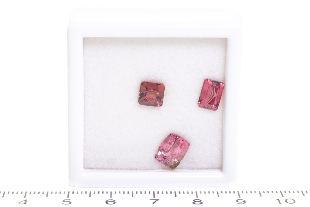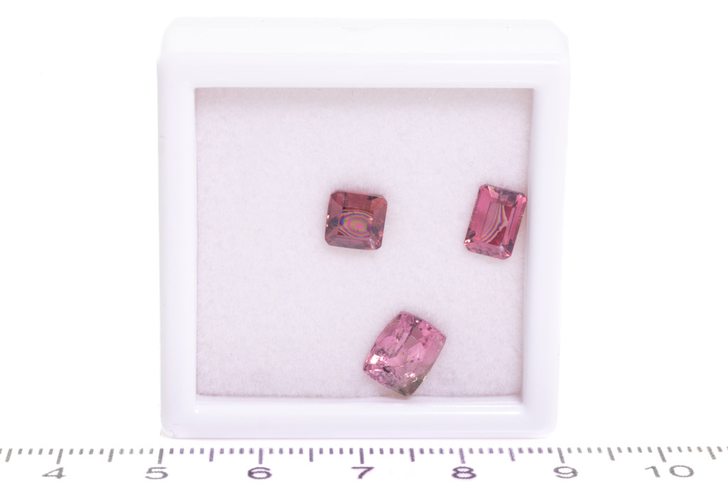 A loose parcel of 3 emerald cut pink Tourmalines totalling 4.53cts. (As New)