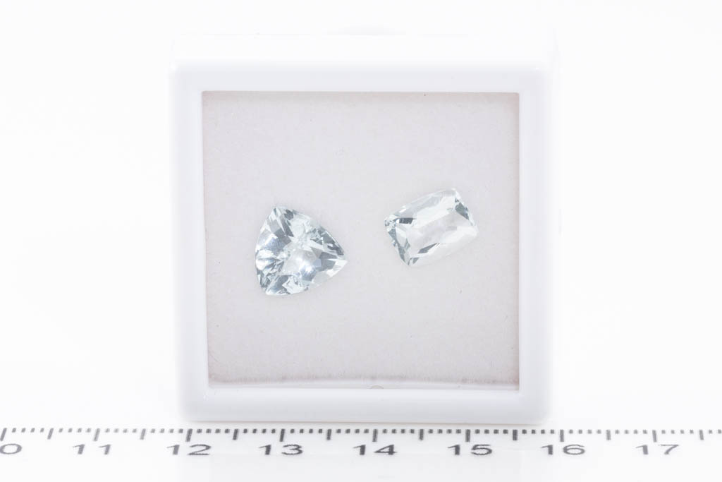 A parcel of 1 trillion and 1 cushion cut loose Aquamarines totalling 4.54cts. Size: 10.0x10.0x5.8mm and 9.0x7.0x4.6mm. (As New)
