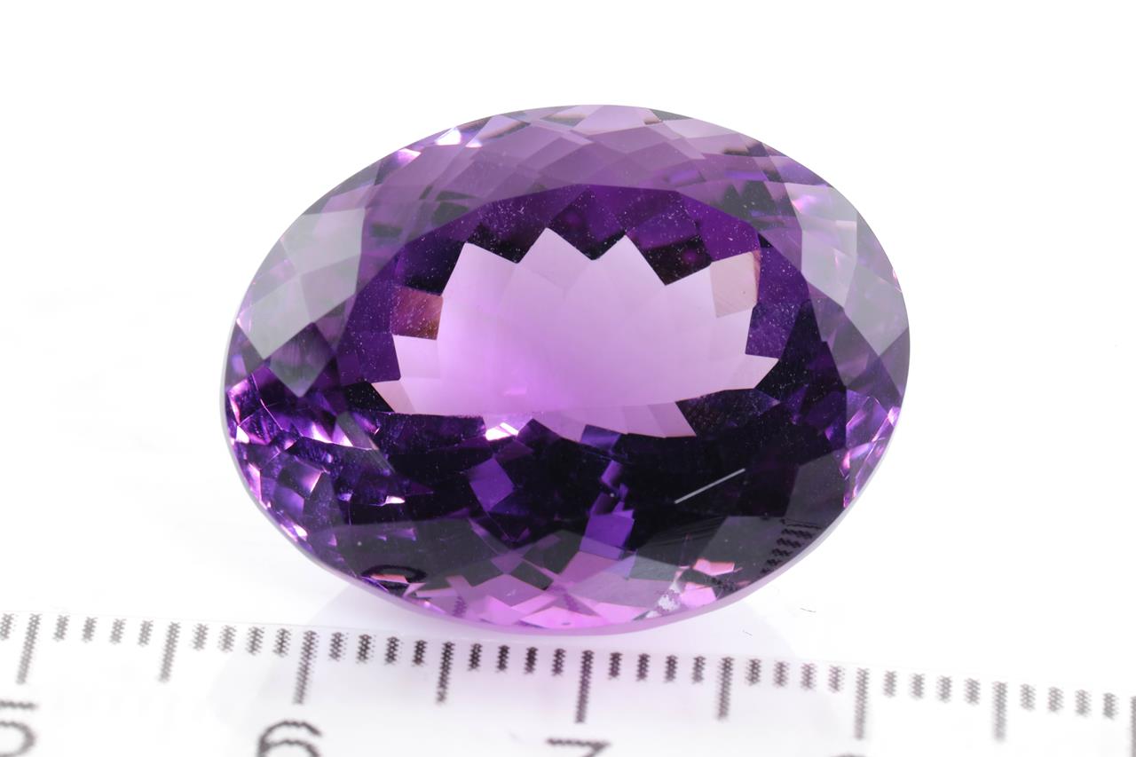 A Loose oval Amethyst of 45.60ct. Size: 25.4 x 19.8 x 15.4mm. (New)