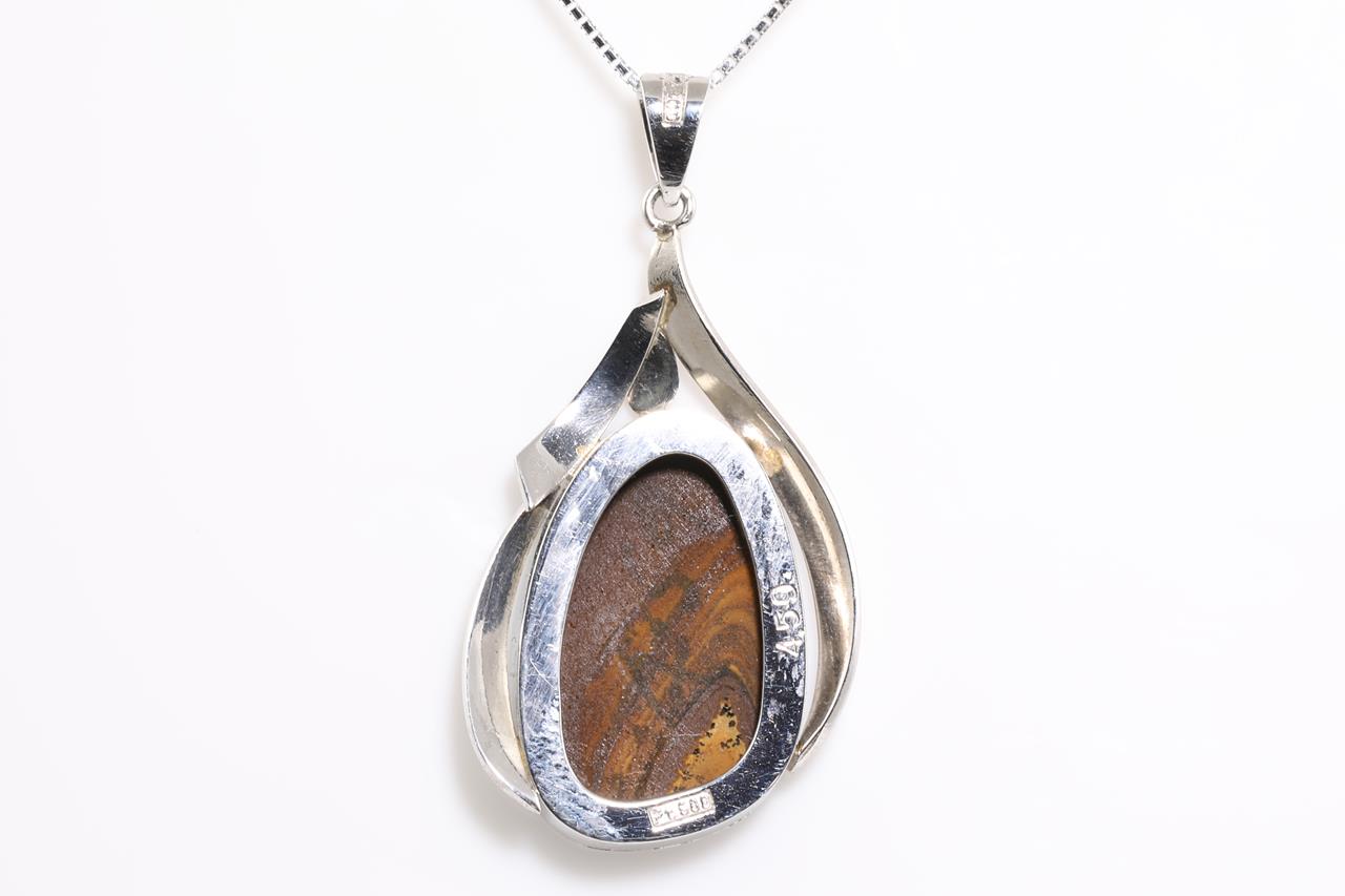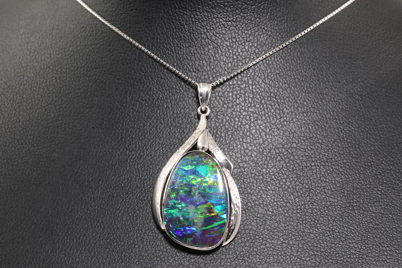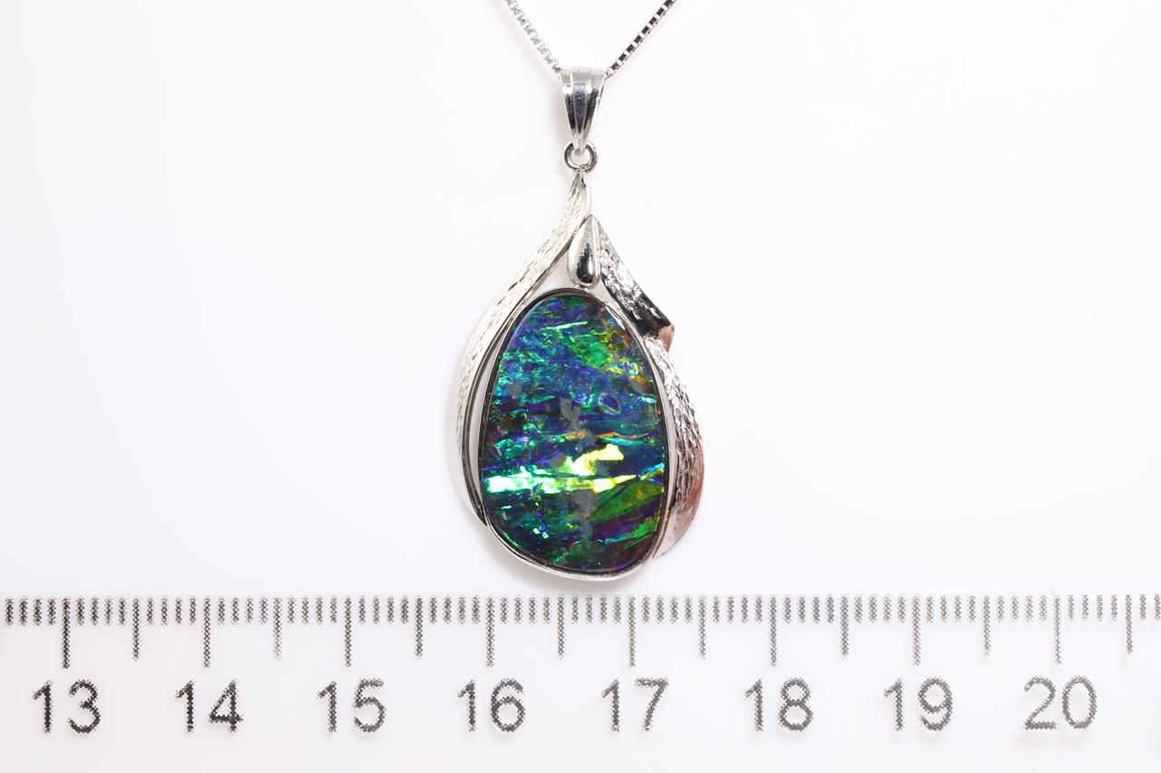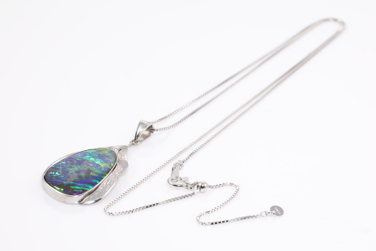 Opal pendant with a Boulder Opal of 4.59ct. Platinum with 18ct white gold 44cm adjustable chain. Weight: 6.8g (Pre-owned)