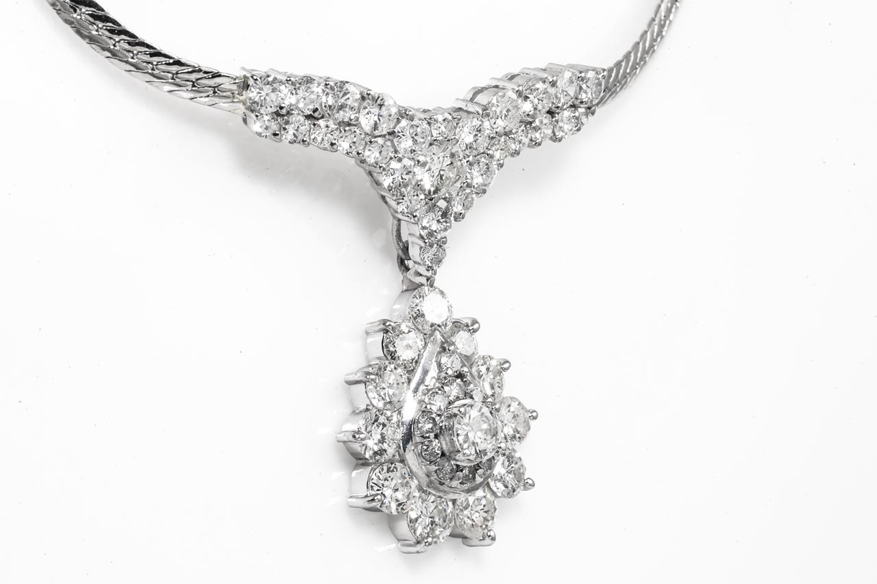 Diamond necklace with round Diamonds totalling 4.61cts (Estimated grading: H-I SI). Platinum with attached chain. Length: 41cm. Weight: 23.1g. With certificate #415443. (Pre-owned)