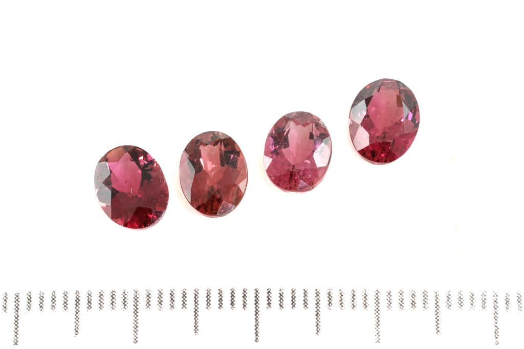 A loose parcel of 4 oval shape purplish red Tourmaline totalling 4.71cts. Size: a7.9x5.8mm & 7.6x5.9mm. (As New)