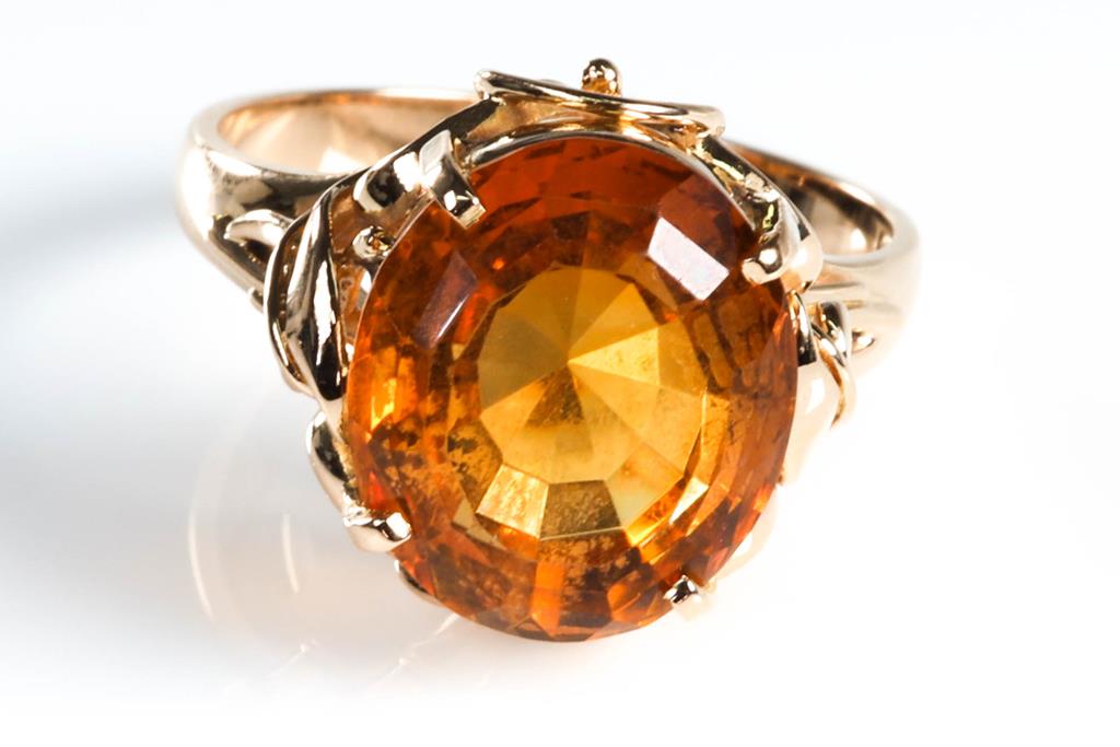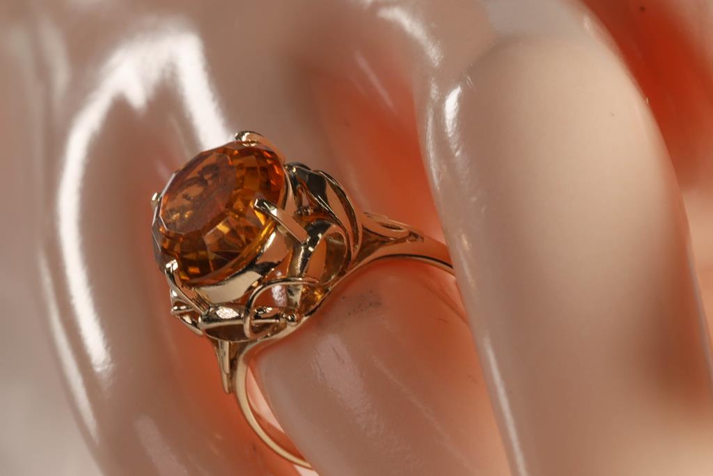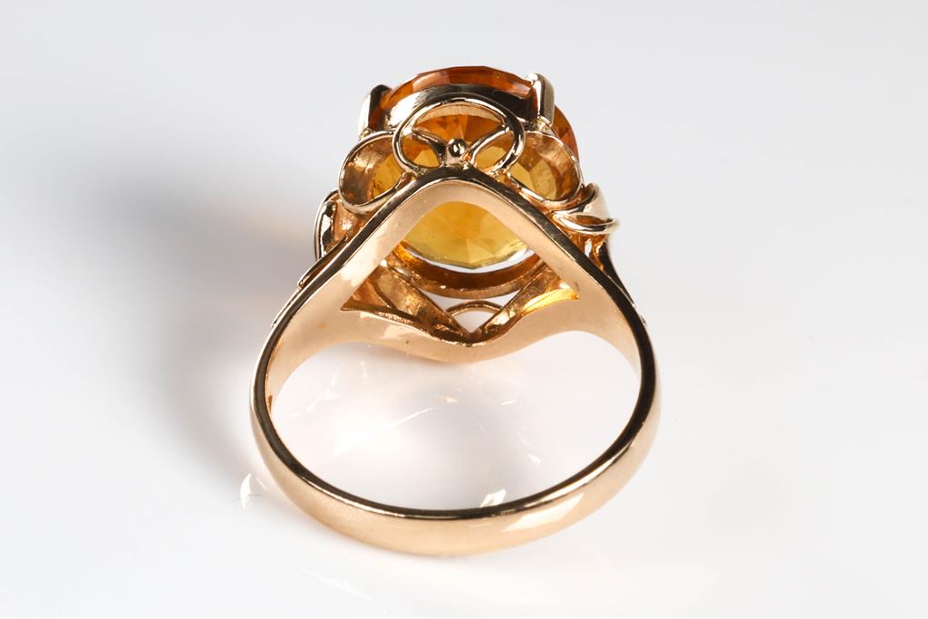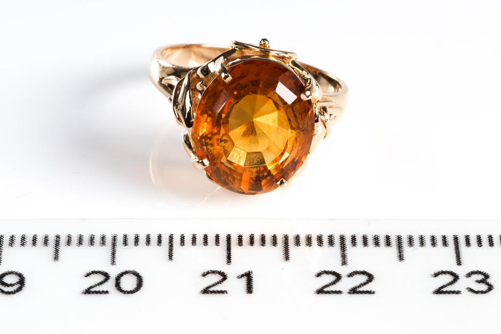 Citrine Ring with an oval shape Citrine of approximately 4.90ct. 18ct yellow gold. Ring size: M. Weight: 5.2g. (Pre-owned)