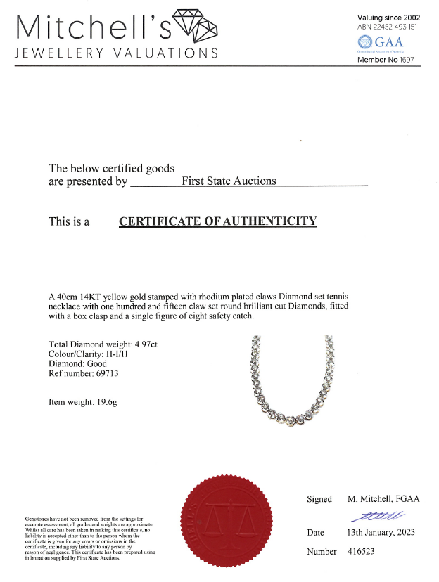 4.97ct Diamond Tennis Necklace | First State Auctions