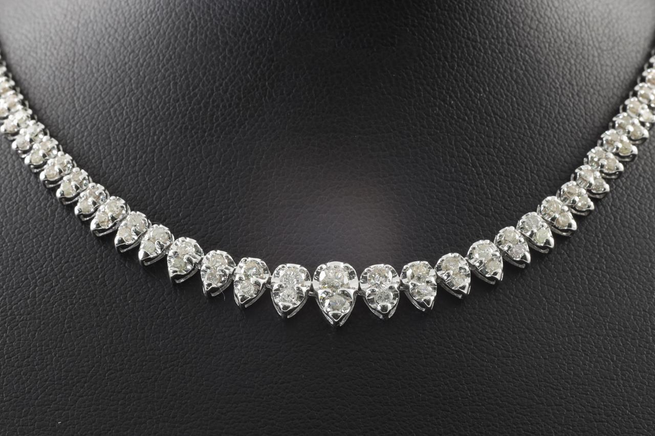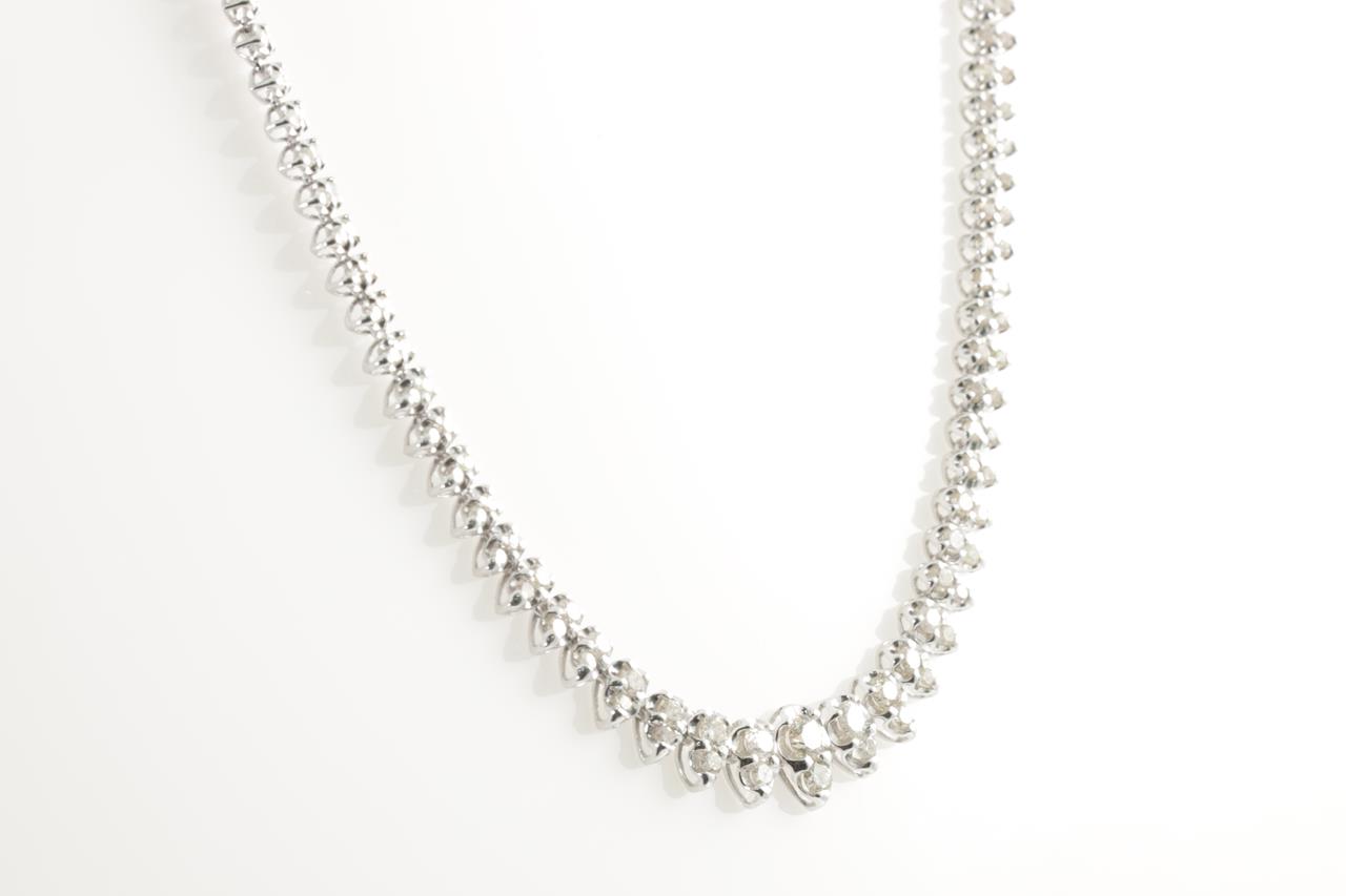 Diamond necklace with round Diamonds totalling 5.01cts (Estimated grading: H-K P3). 18ct white gold. Length: 42.5cm. Weight: 14.7g (Pre-owned)