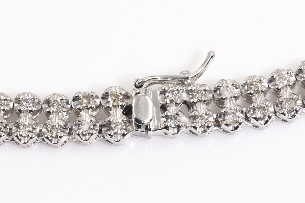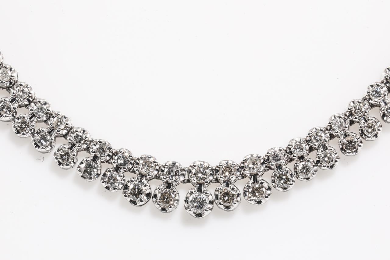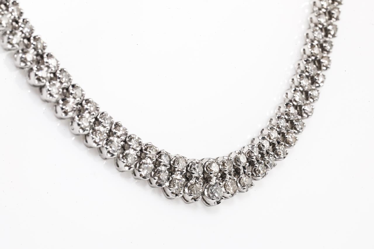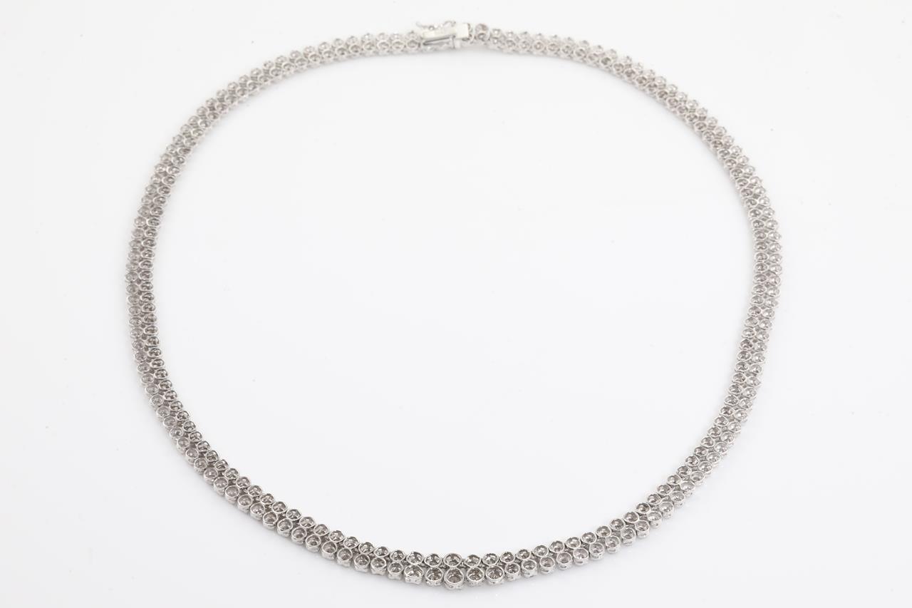 Diamond double row necklace with graduated round Diamonds totalling 5.00cts (Estimated grading: L-M P1-P2). Platinum. Length: 43cm. Weight: 37.0g. With Certificate #415396. (Pre-owned)