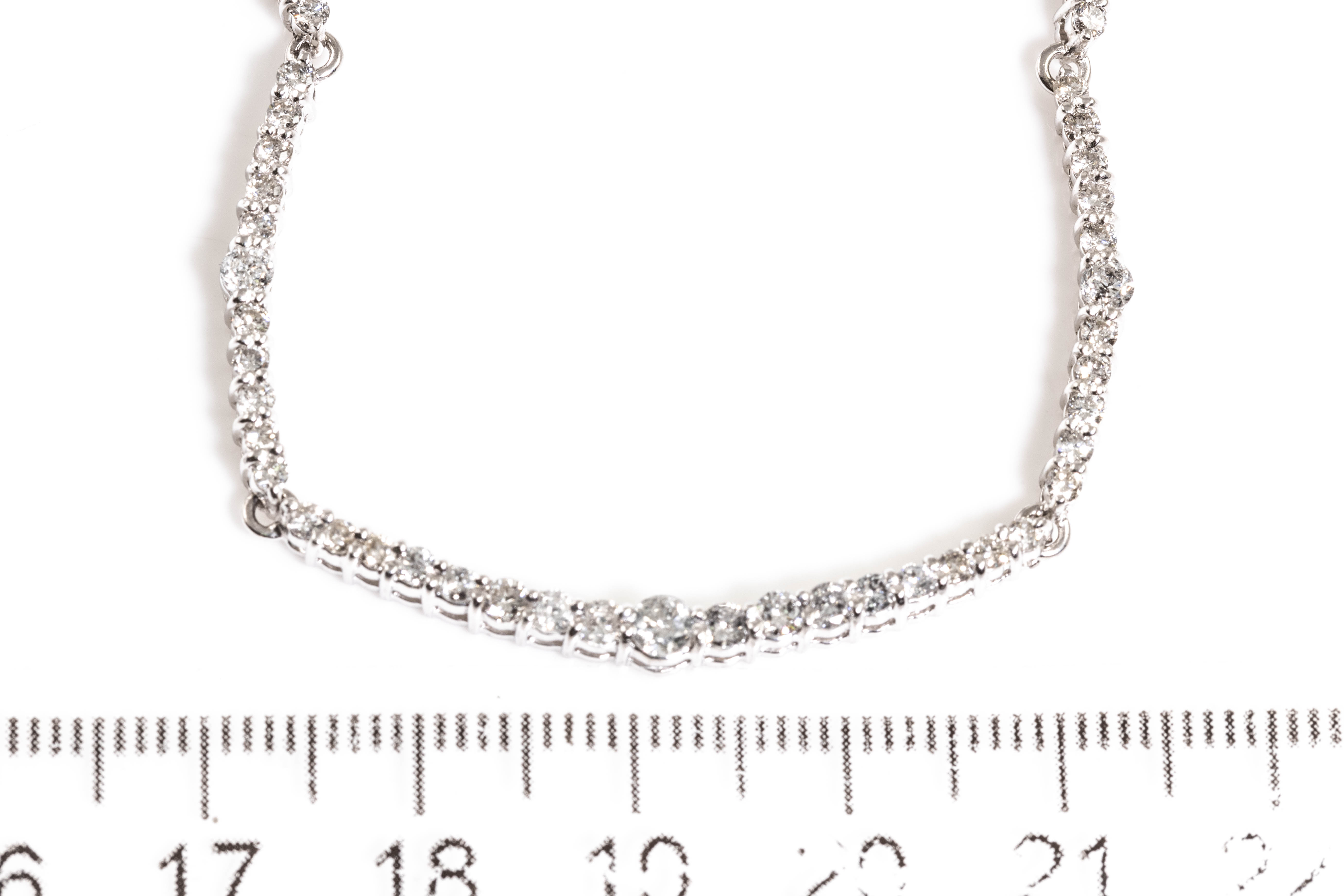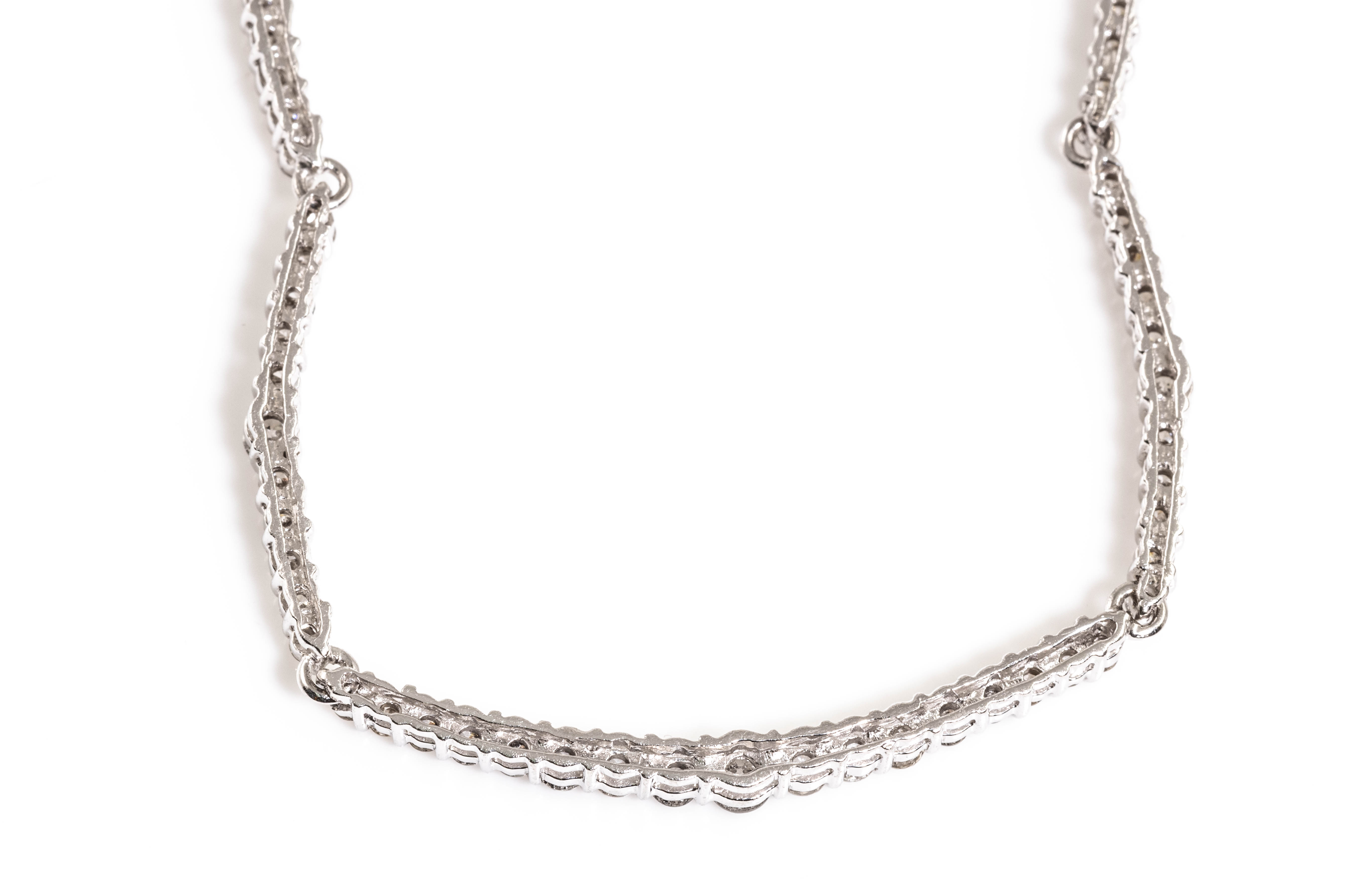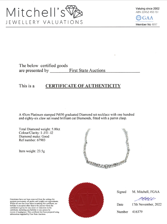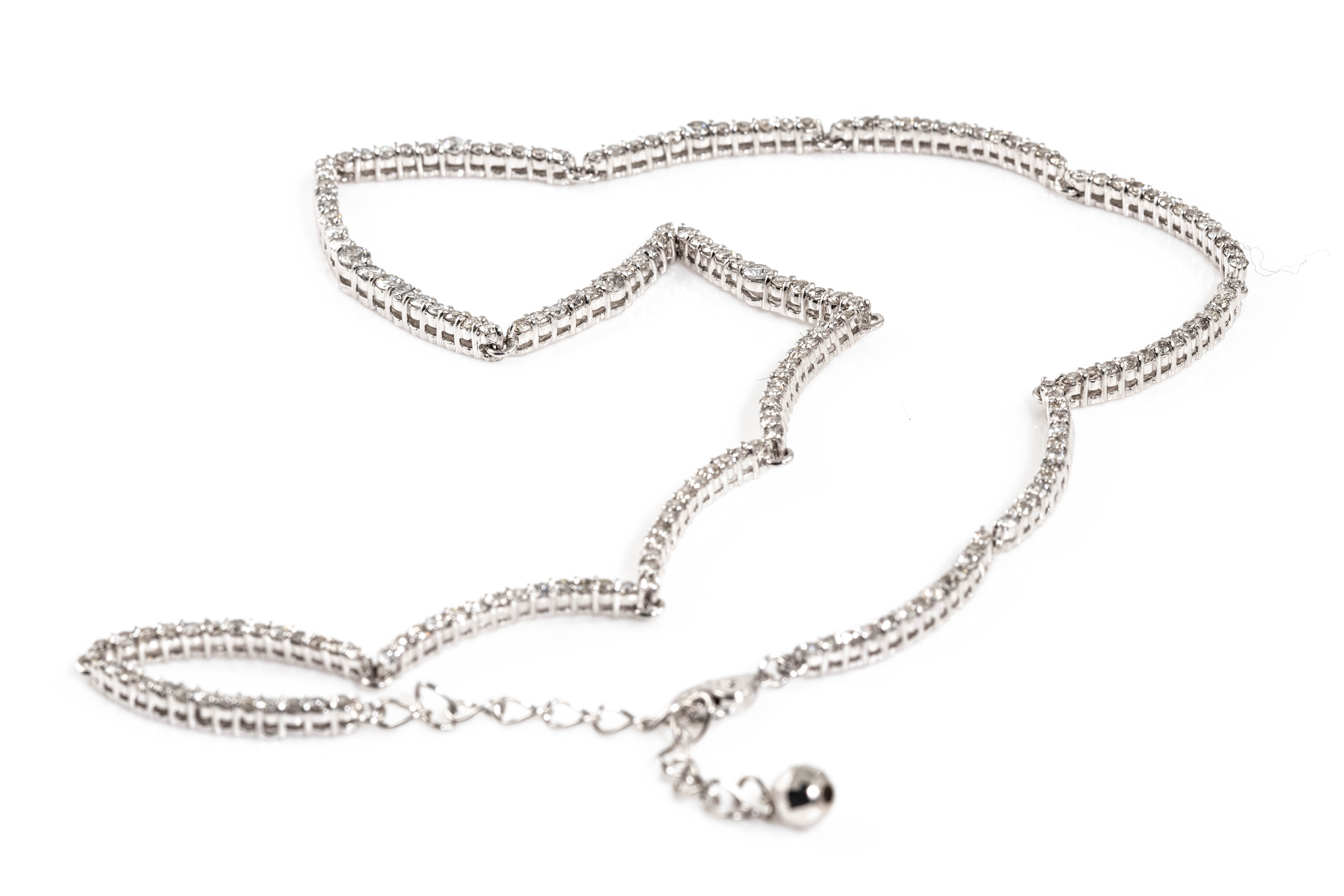 Diamond necklace with round Diamonds totalling 5.00cts (Estimated grading: I-J P1-P2). Platinum. Adjustable Maximum length: 43cm. Weight: 23.5g. With Certificate #416379. (Pre-owned)