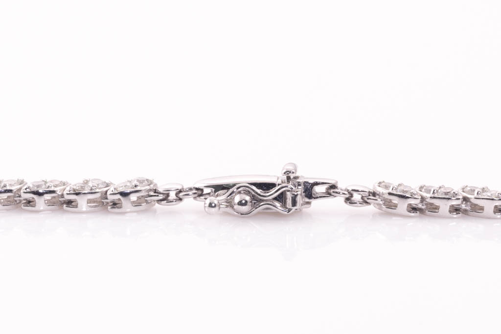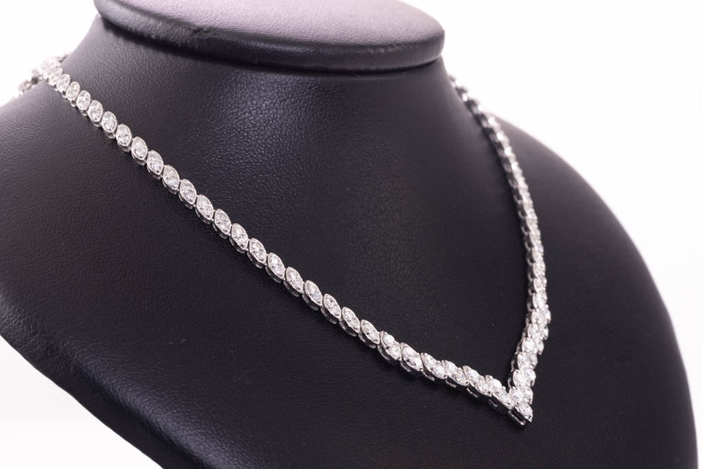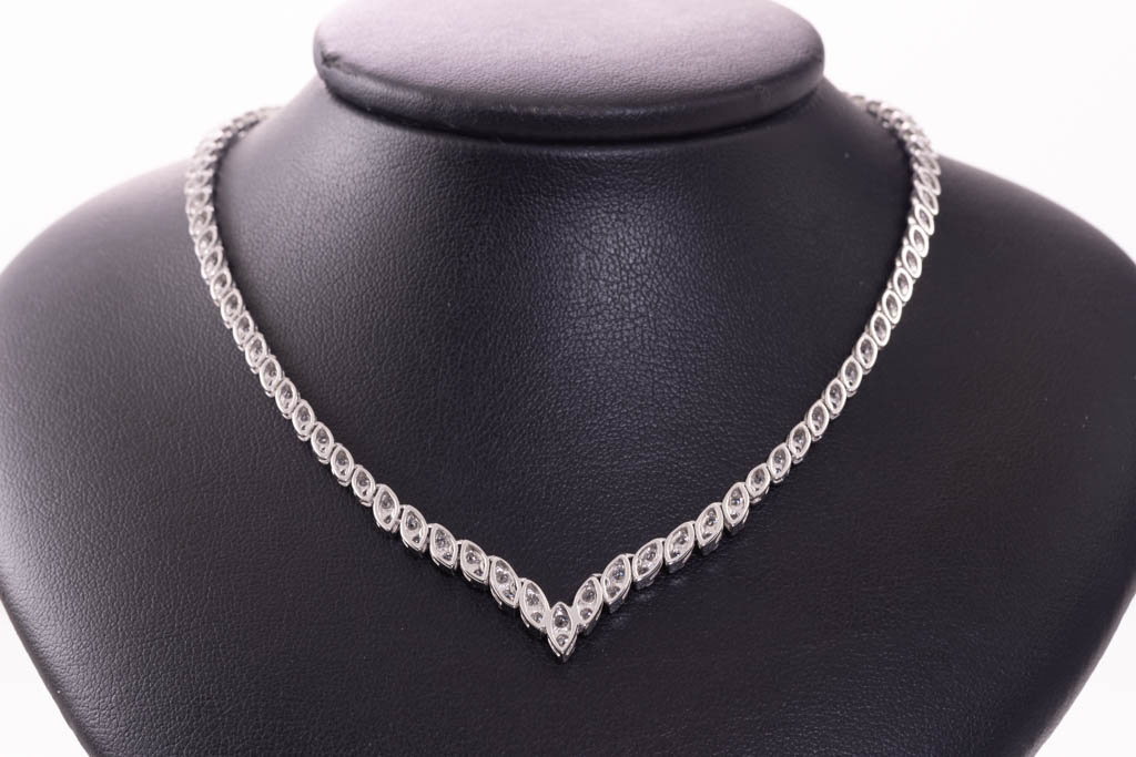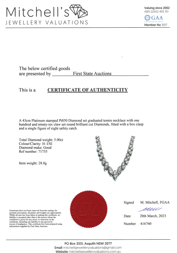 Diamond Necklace with round Diamonds totalling 5.00cts (Estimated grading: H-I SI). Platinum. Length: 43cm. Weight: 28.0g. With Certificate #416760 (Pre-owned)