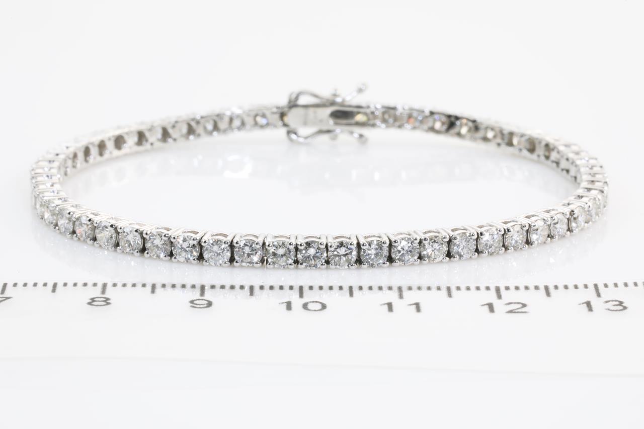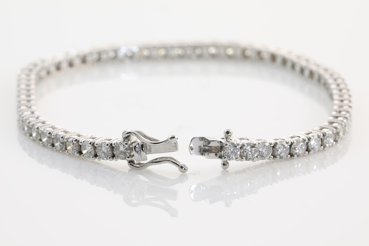 Diamond tennis bracelet with 56 round Diamonds totalling 5.00cts (Estimated grading: G-H SI-P1). 18ct white gold. Length: 18cm. Weight: 12.2g. With certificate #413969. (Pre-owned)